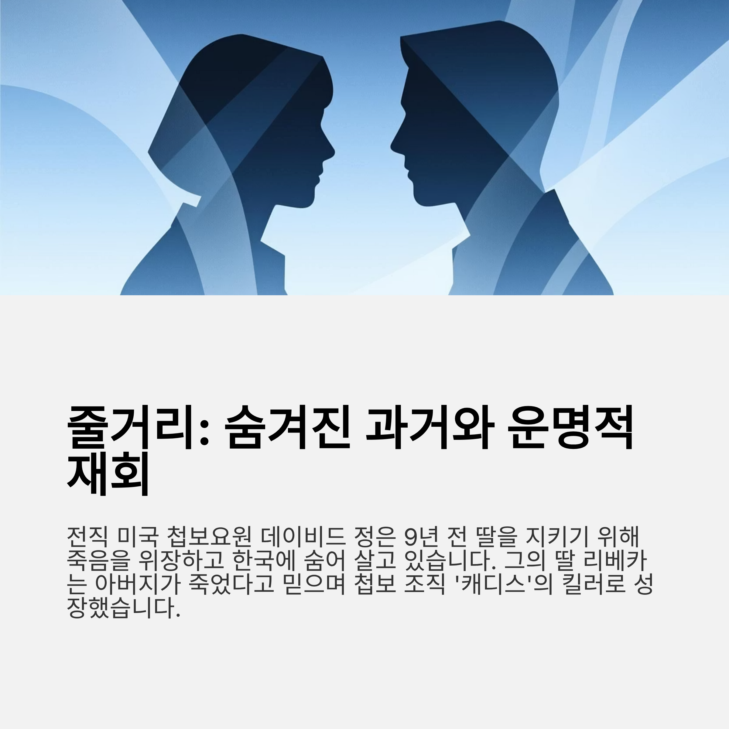 주인공은 전직 미국 첩보요원 데이비드 정(대니얼 대 킴). 그는 9년 전 딸을 지키기 위해 죽음을 위장한 뒤 한국에 숨어 살아갑니다. 하지만 딸 "리베카(레이나 하디스티)"는 아버지가 죽었다고 믿고 첩보 조직 ‘캐디스’의 킬러로 성장합니다.
