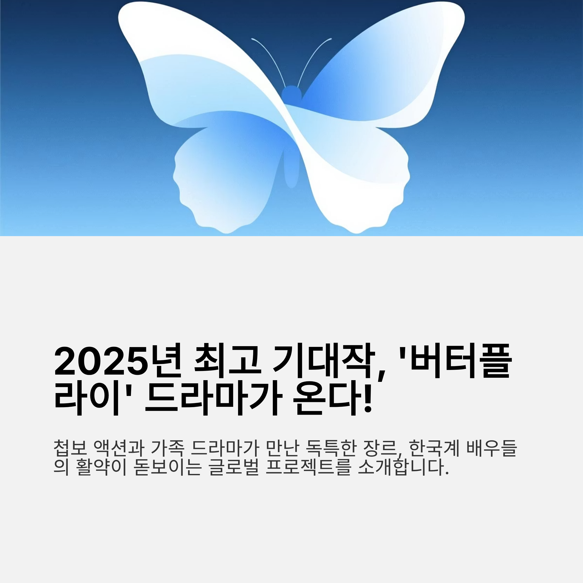드라마 ‘버터플라이’는 첩보 액션과 가족 드라마가 결합된 독창적 작품으로, 한국적 정서와 글로벌 스토리텔링을 모두 담아낸 대형 프로젝트입니다.
