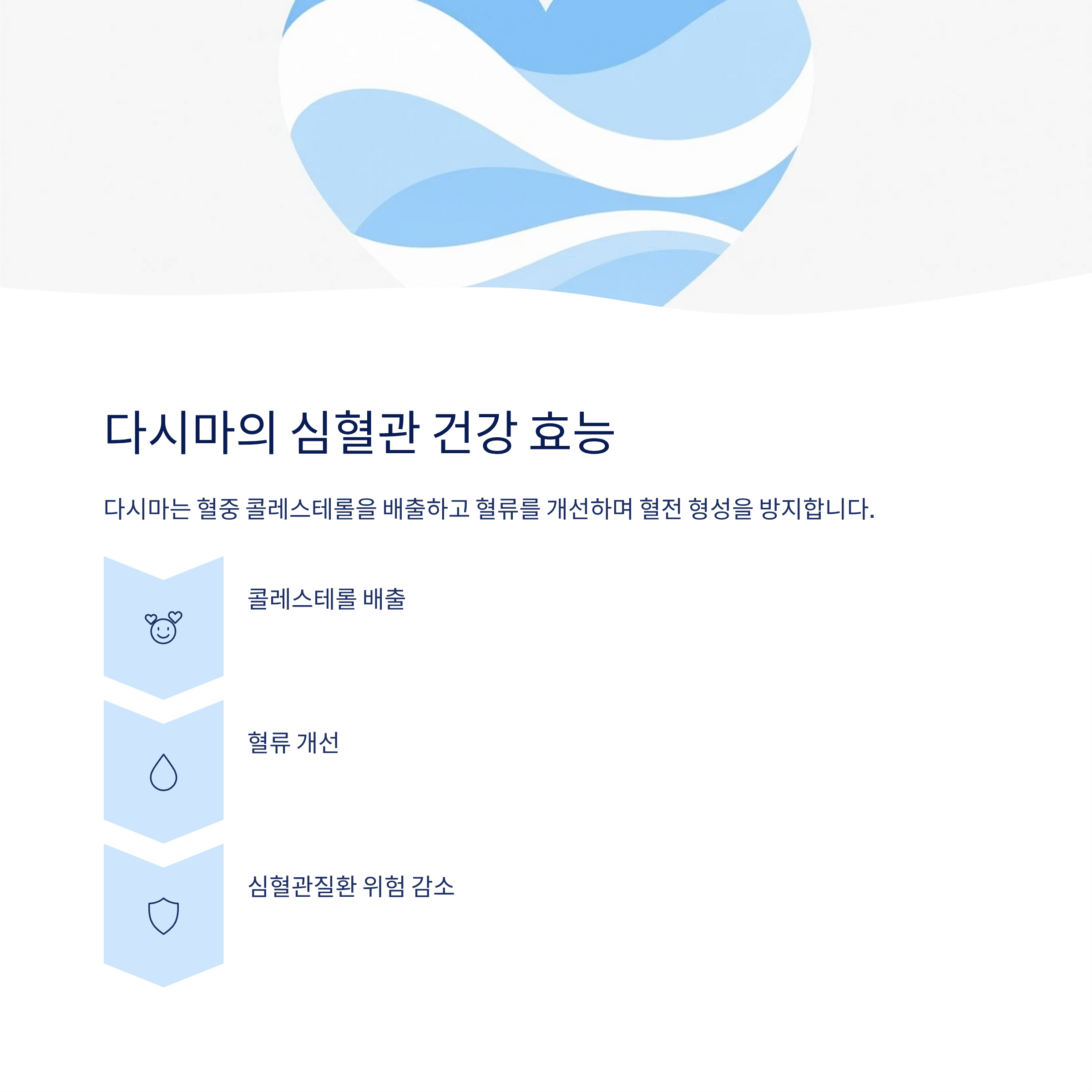 - 혈중 콜레스테롤 배출, 혈류 개선, 혈전 방지 → 심혈관질환 위험 감소