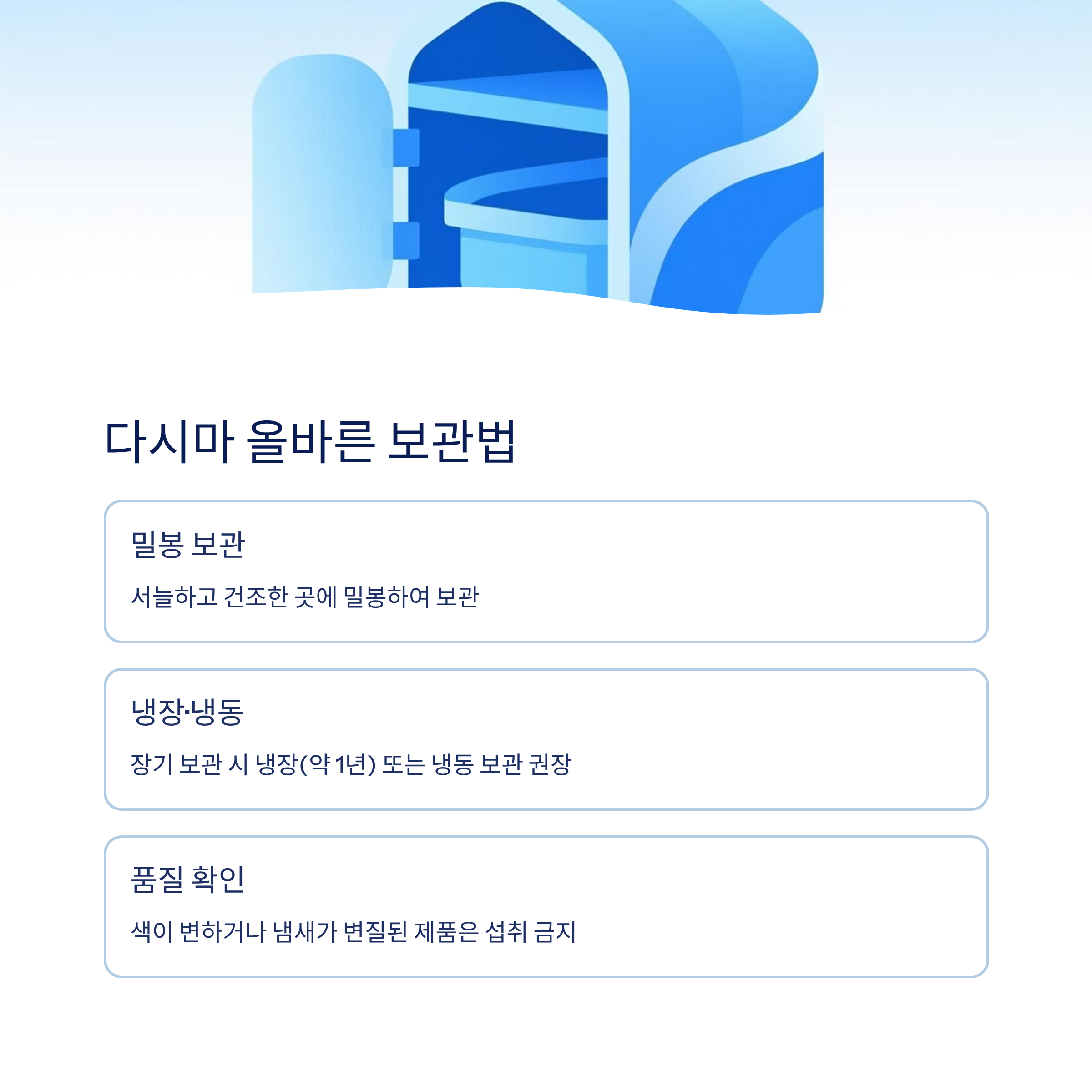 - 냉장 보관 시 약 1년, 냉동 시 더 오래 보존 가능