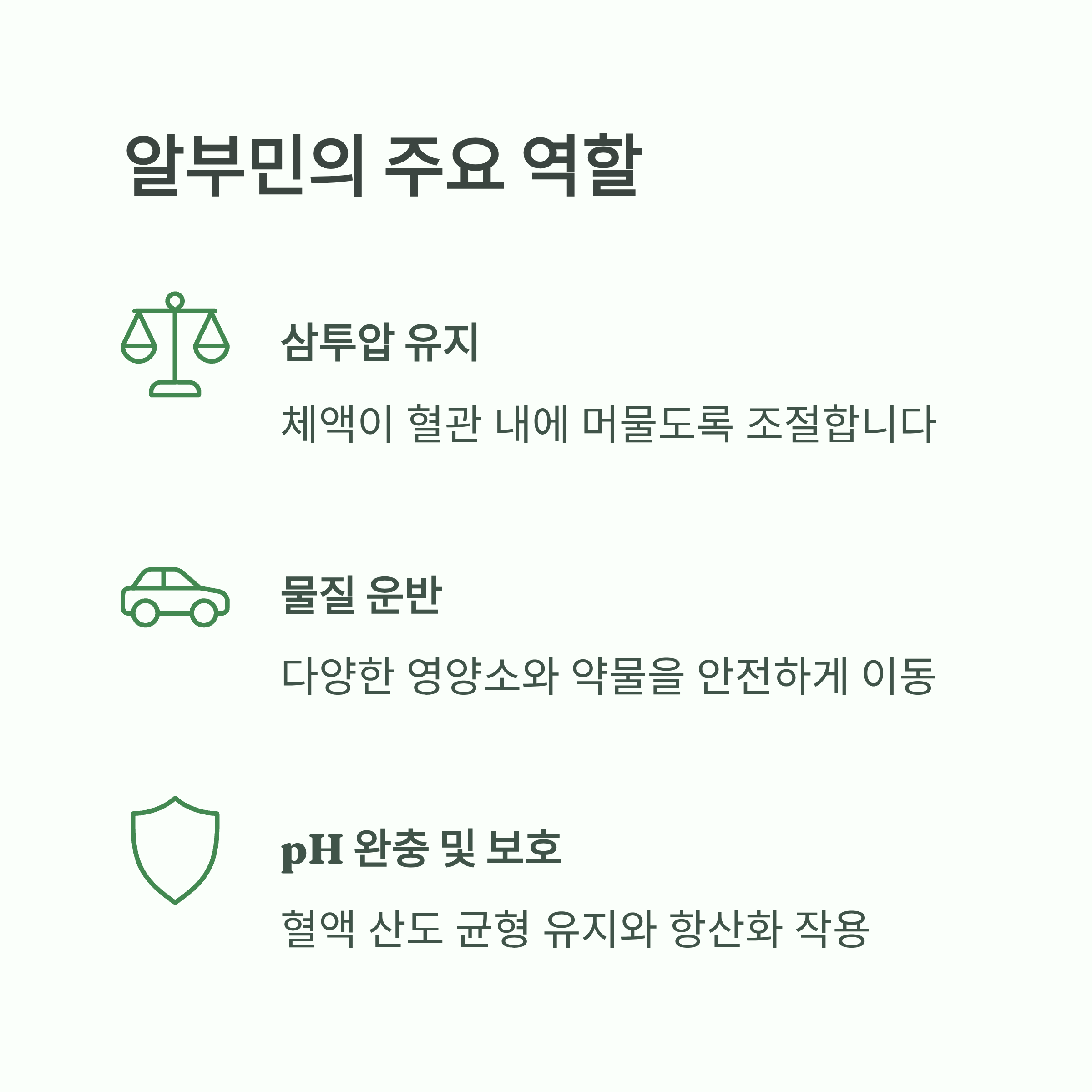 알부민은 혈액 삼투압 유지, 영양분 운반, 항산화 보호, 면역 강화에 중요한 역할을 하는 단백질입니다. 하지만 과다 투여나 주사제 사용 시 부작용이 있을 수 있어 반드시 의사 지시가 필요합니다.