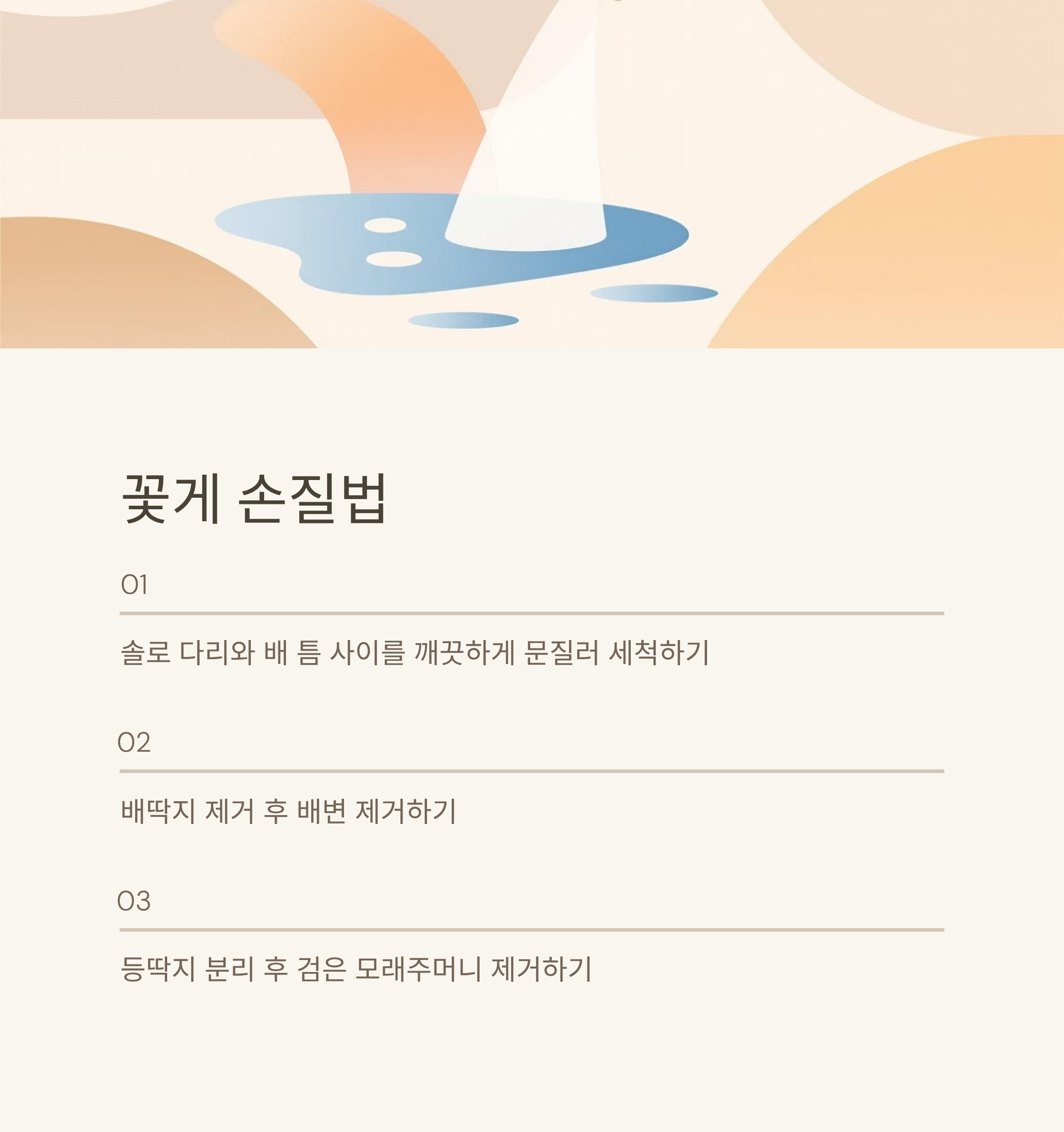 - 솔로 다리·배 틈 사이를 깨끗하게 문질러 세척