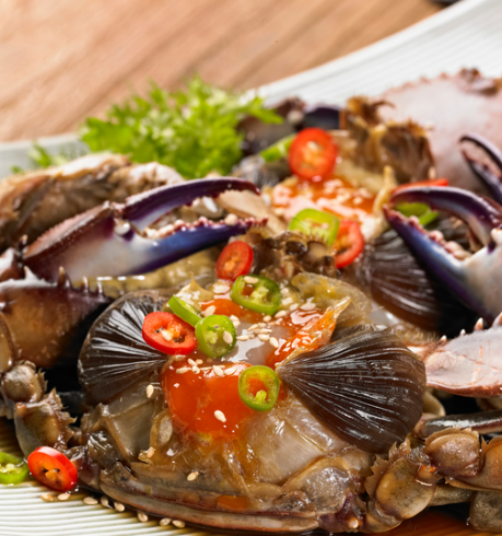 - 수꽃게는 배가 뾰족하며 살이 꽉 차 가을철이 제철.