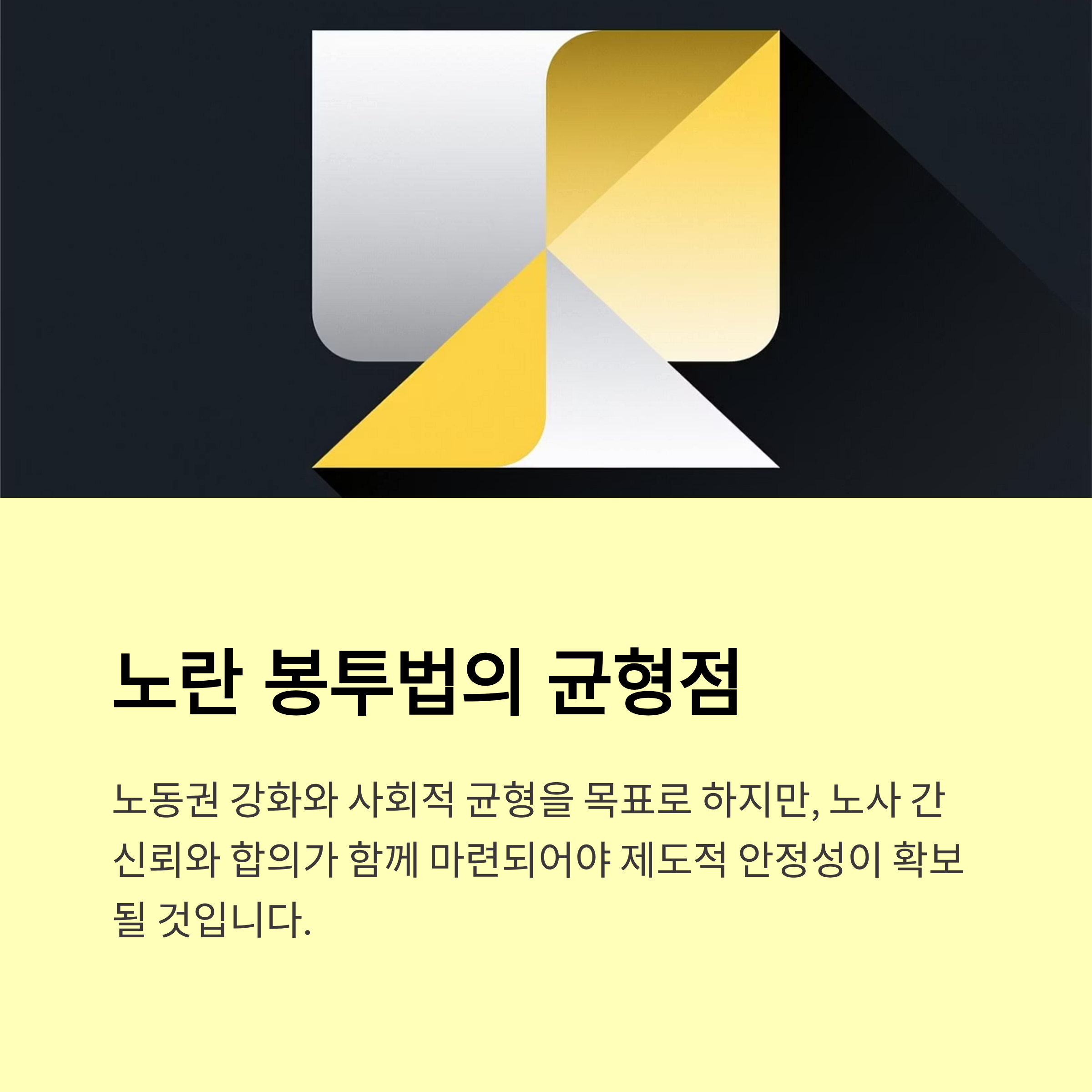👉 결국 이 법은 노동권 강화와 사회적 균형을 목표로 하지만, 노사 간 신뢰와 합의가 함께 마련되어야 제도적 안정성이 확보될 것입니다.