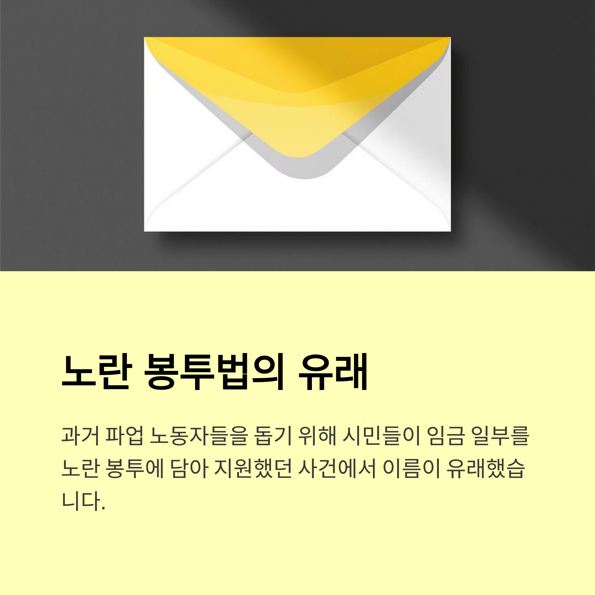 A3. 과거 파업 노동자들을 시민들이 임금 일부로 지원할 때 노란 봉투에 돈을 담아 전달한 사건에서 따온 이름입니다.