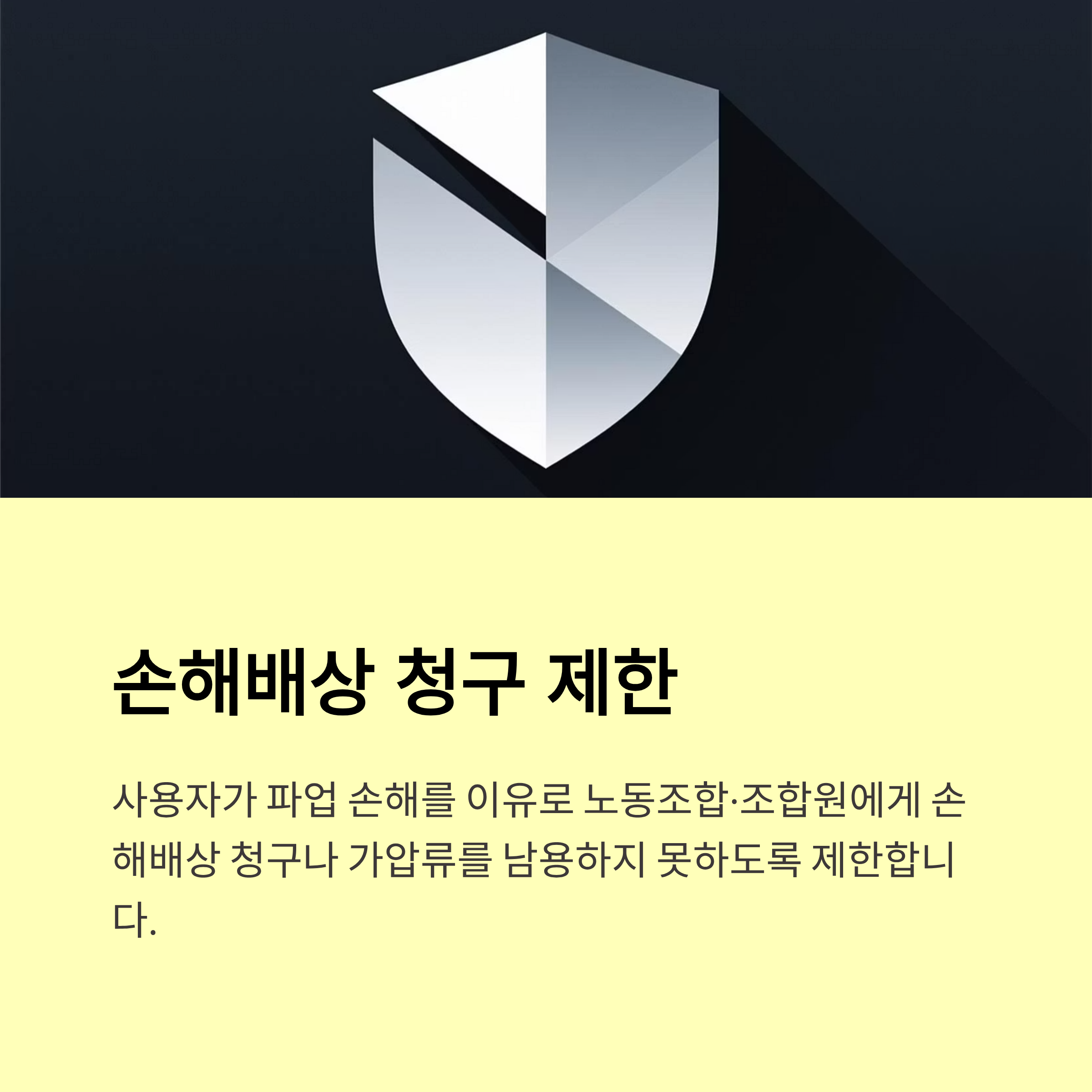 - 사용자가 파업 손해를 이유로 노동조합·조합원에게 손해배상 청구나 가압류를 남용하지 못하도록 제한