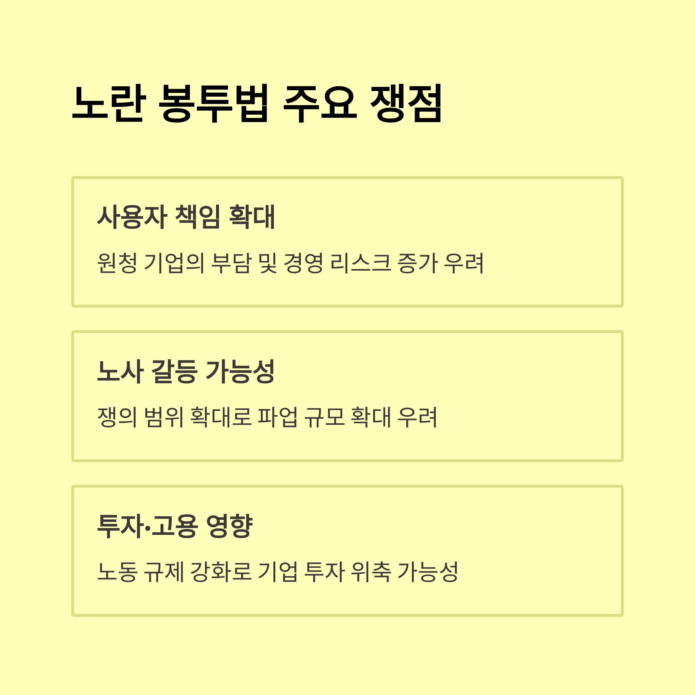- 사용자 책임 확대: 원청 기업의 부담 및 경영 리스크 증가 우려