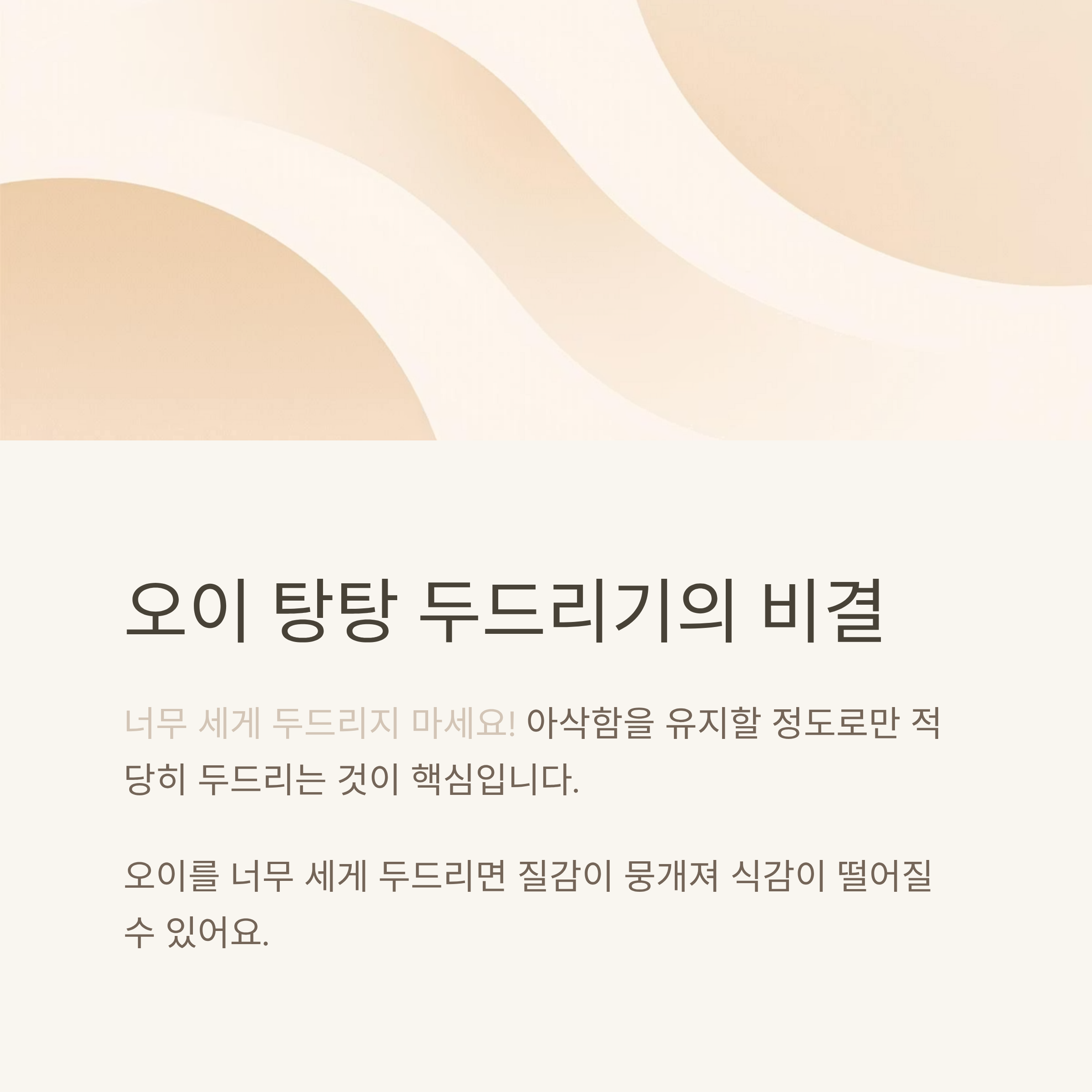 - 오이를 너무 세게 두드리면 질감이 뭉개질 수 있음