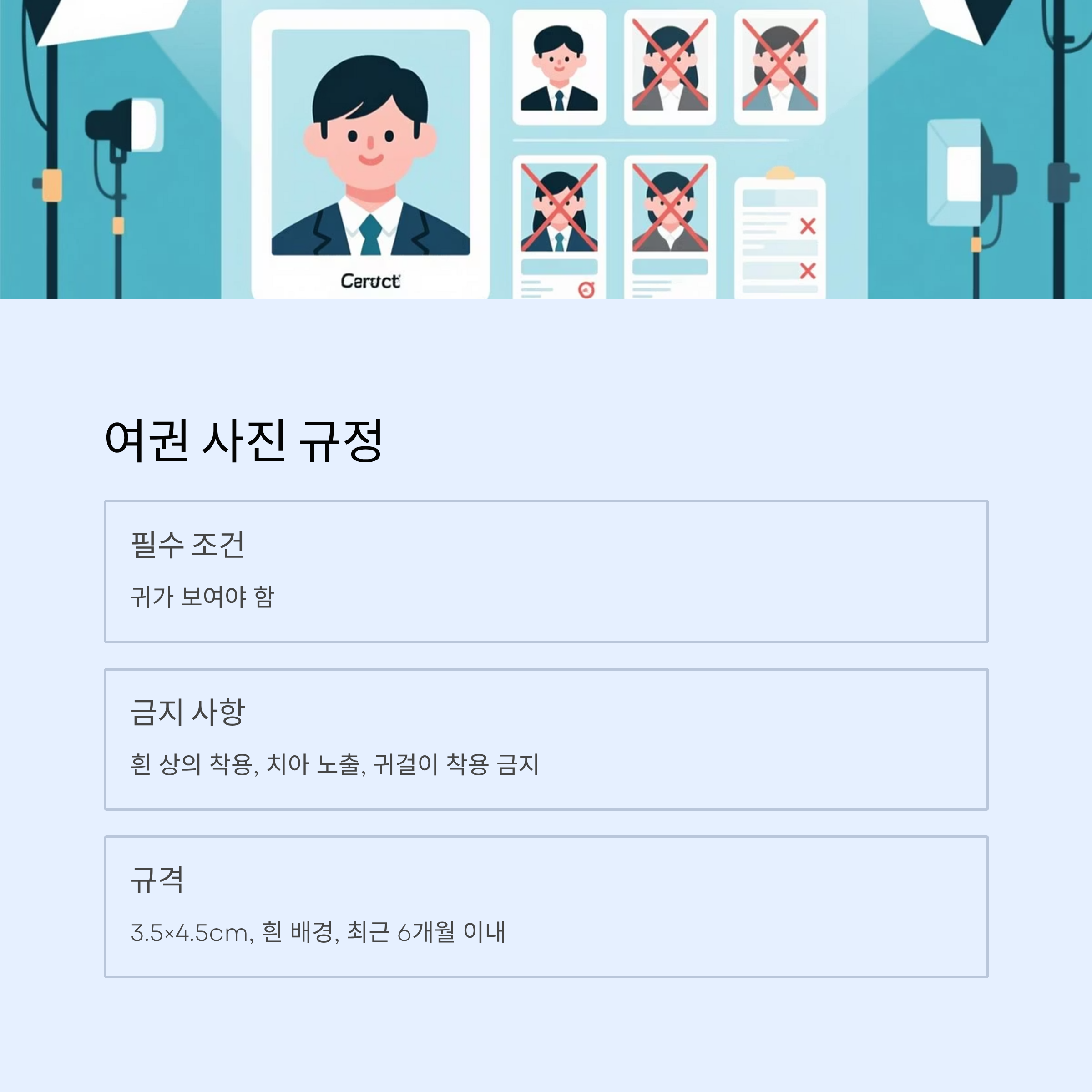 ※ 사진 규정: 귀가 보여야 하며, 흰 상의·치아 노출·귀걸이 착용은 금지됩니다.