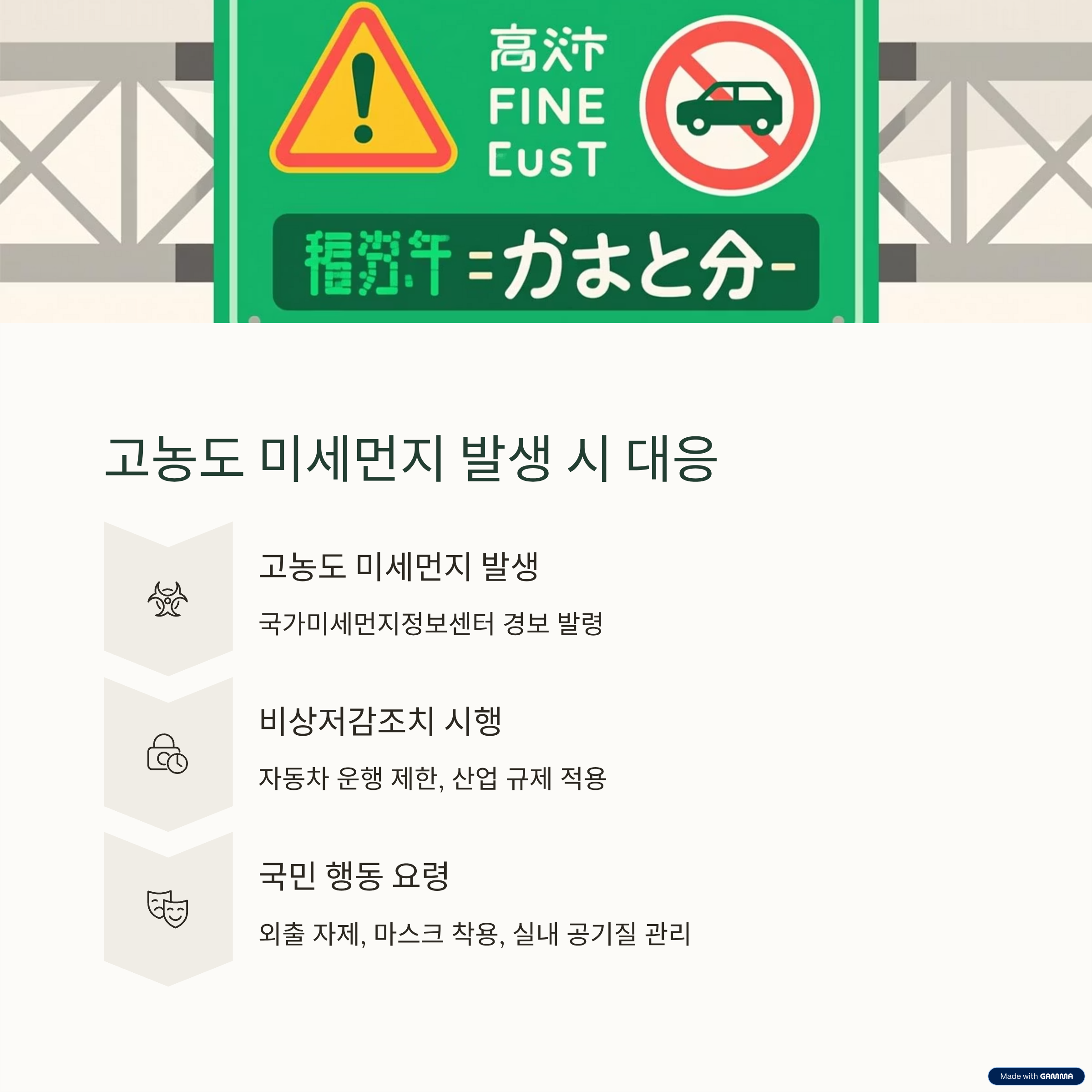- 고농도 미세먼지 발생 시 → 운행 제한, 산업 규제