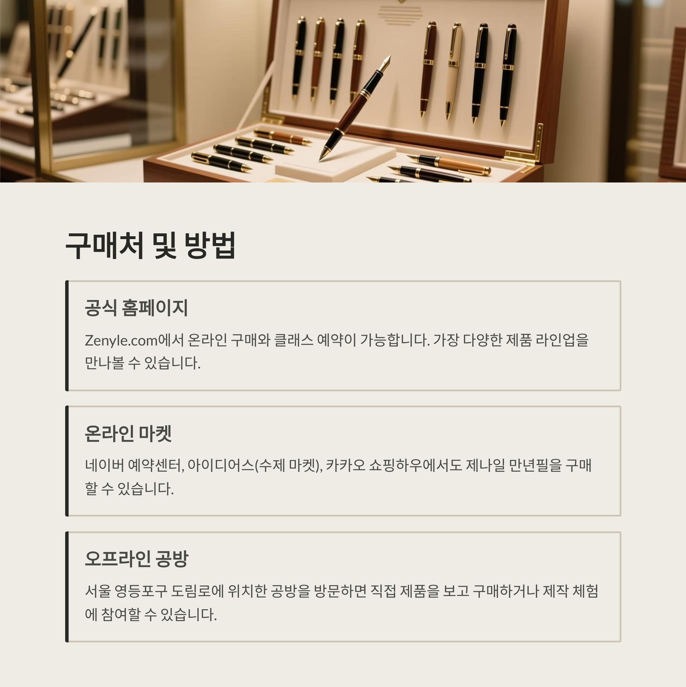 - 오프라인 공방: 서울 영등포구 도림로 → 방문 구매 및 제작 체험 가능