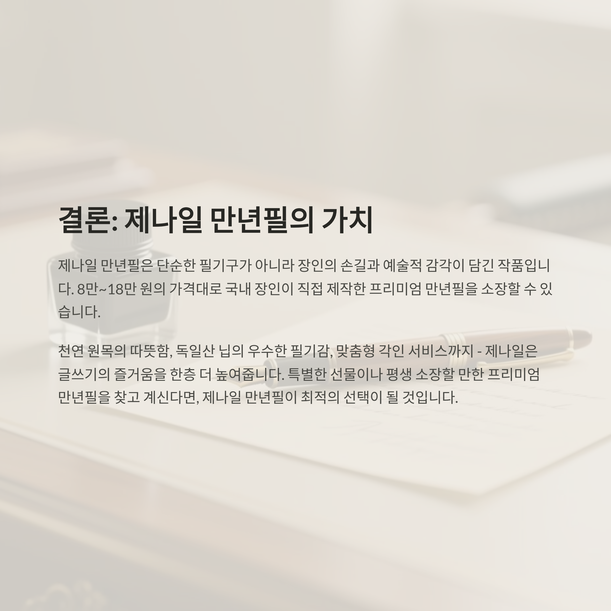 👉 특별한 선물이나 평생 소장할 만한 프리미엄 만년필을 찾는다면, 제나일 만년필이 최적의 선택이 될 수 있습니다.