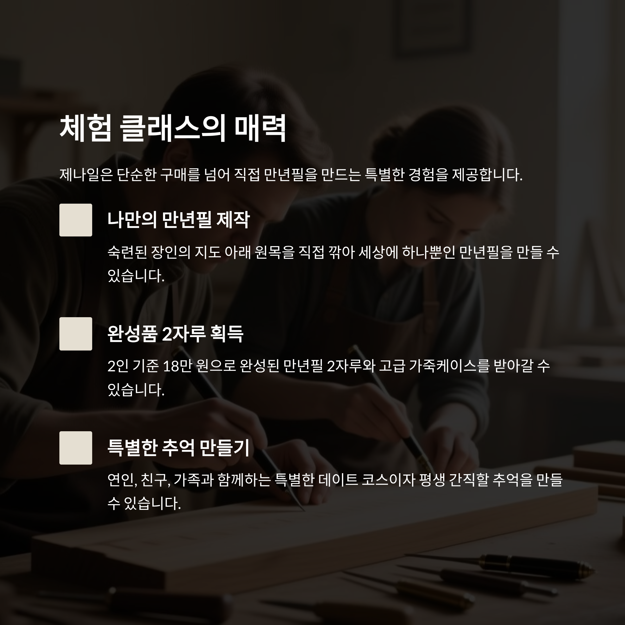 - 체험 클래스(2인 기준): 18만 원