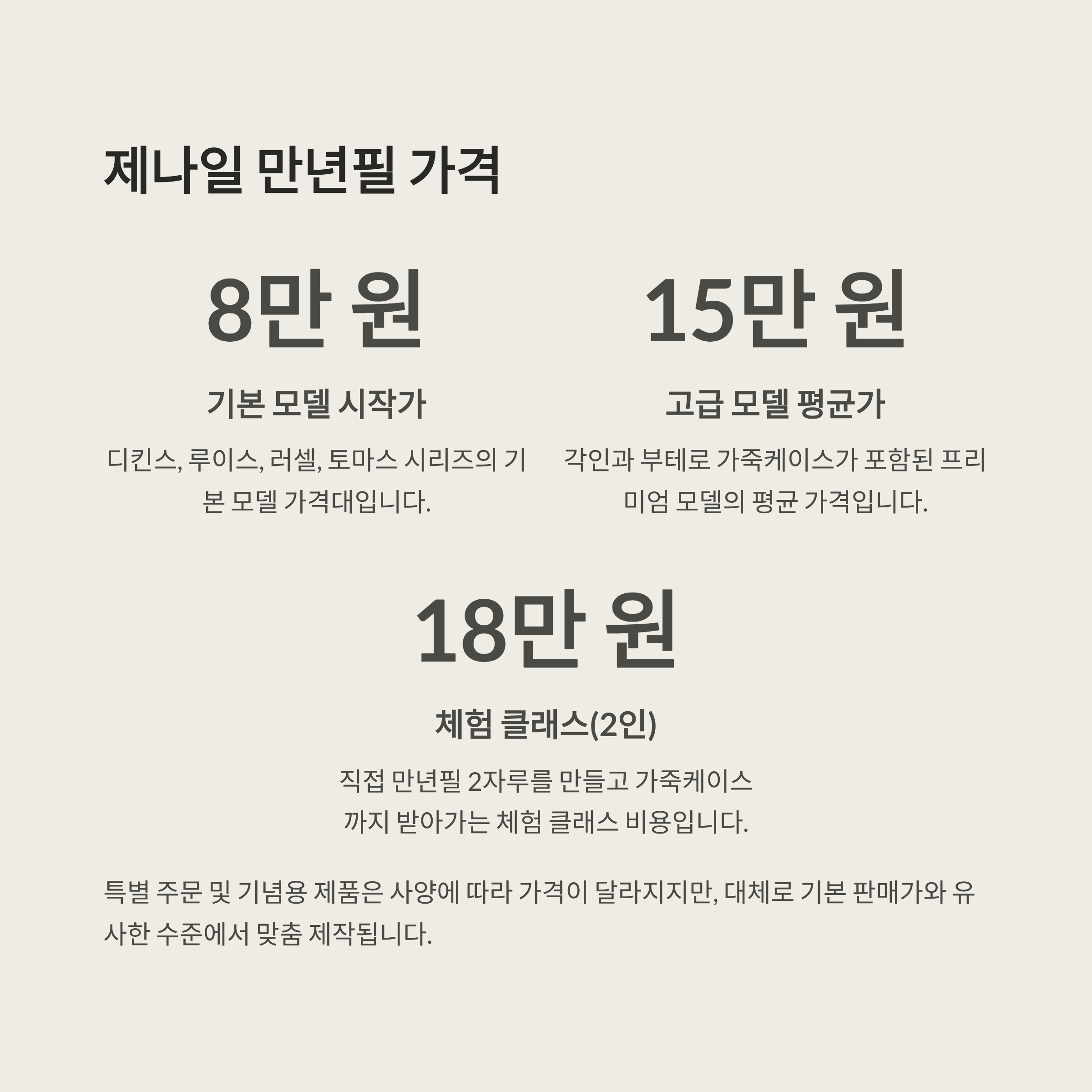 - 각인 + 가죽케이스 포함 고급 제품: 15만 ~ 18만 원