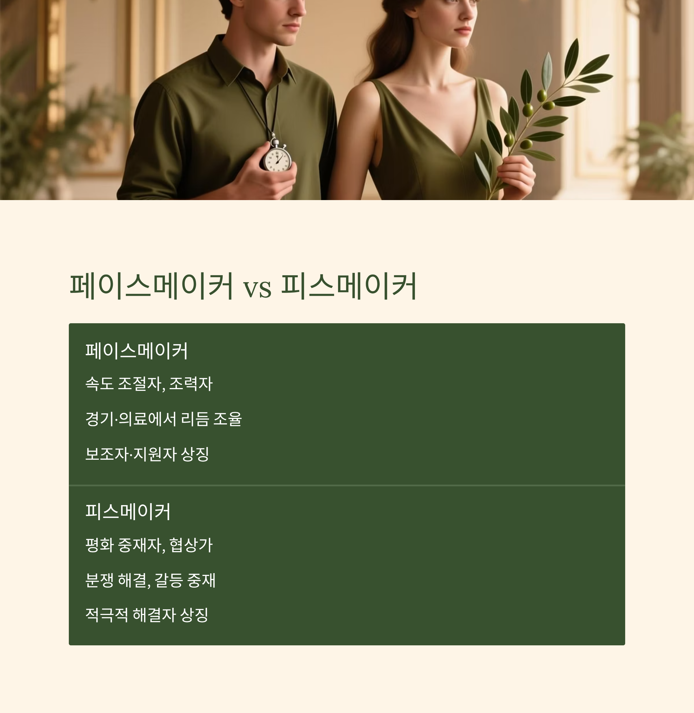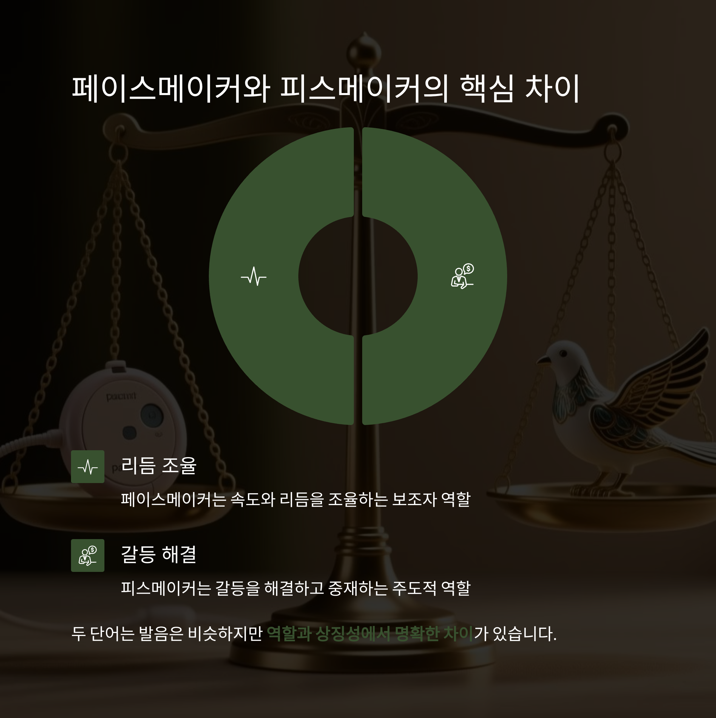 👉 요약하면, 페이스메이커는 리듬과 속도를 조율하는 보조자, 피스메이커는 갈등을 해결하는 중재자라는 점에서 명확히 구분됩니다.