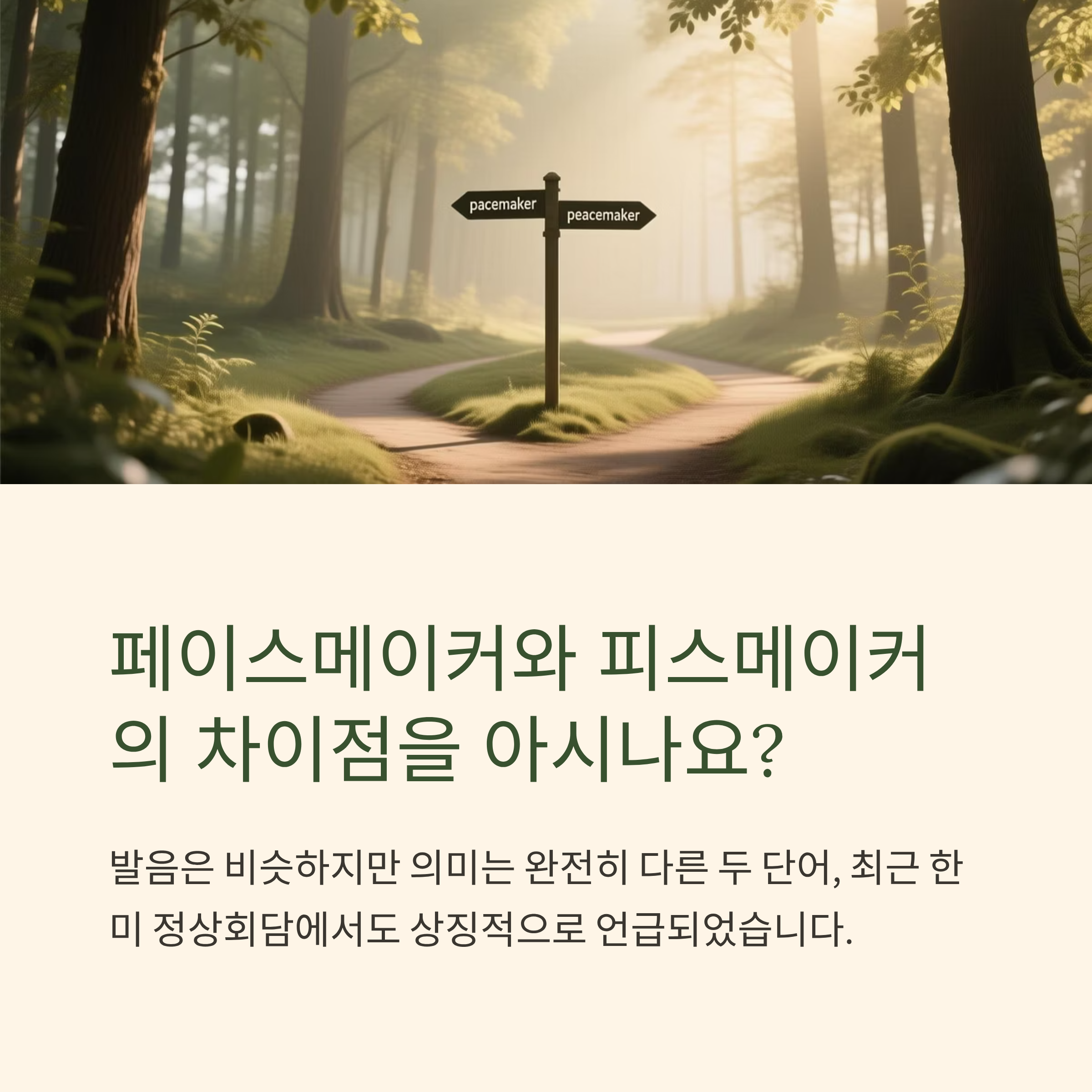“페이스메이커(pacemaker)”와 “피스메이커(peacemaker)”는 발음은 비슷하지만, 의미는 완전히 다릅니다. 특히 최근 한미 정상회담에서도 상징적으로 언급되면서 관심을 모았습니다. 이번 글에서는 페이스 메이커 뜻과 의학적·스포츠적 의미, 피스메이커와의 차이점을 정리했습니다.