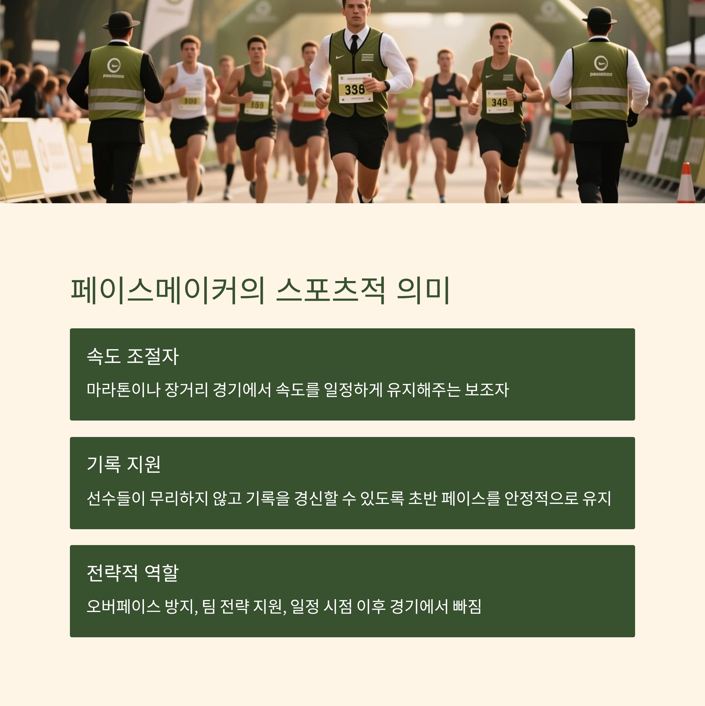 - 마라톤이나 장거리 경기에서 속도를 일정하게 유지해주는 보조자를 뜻합니다.
