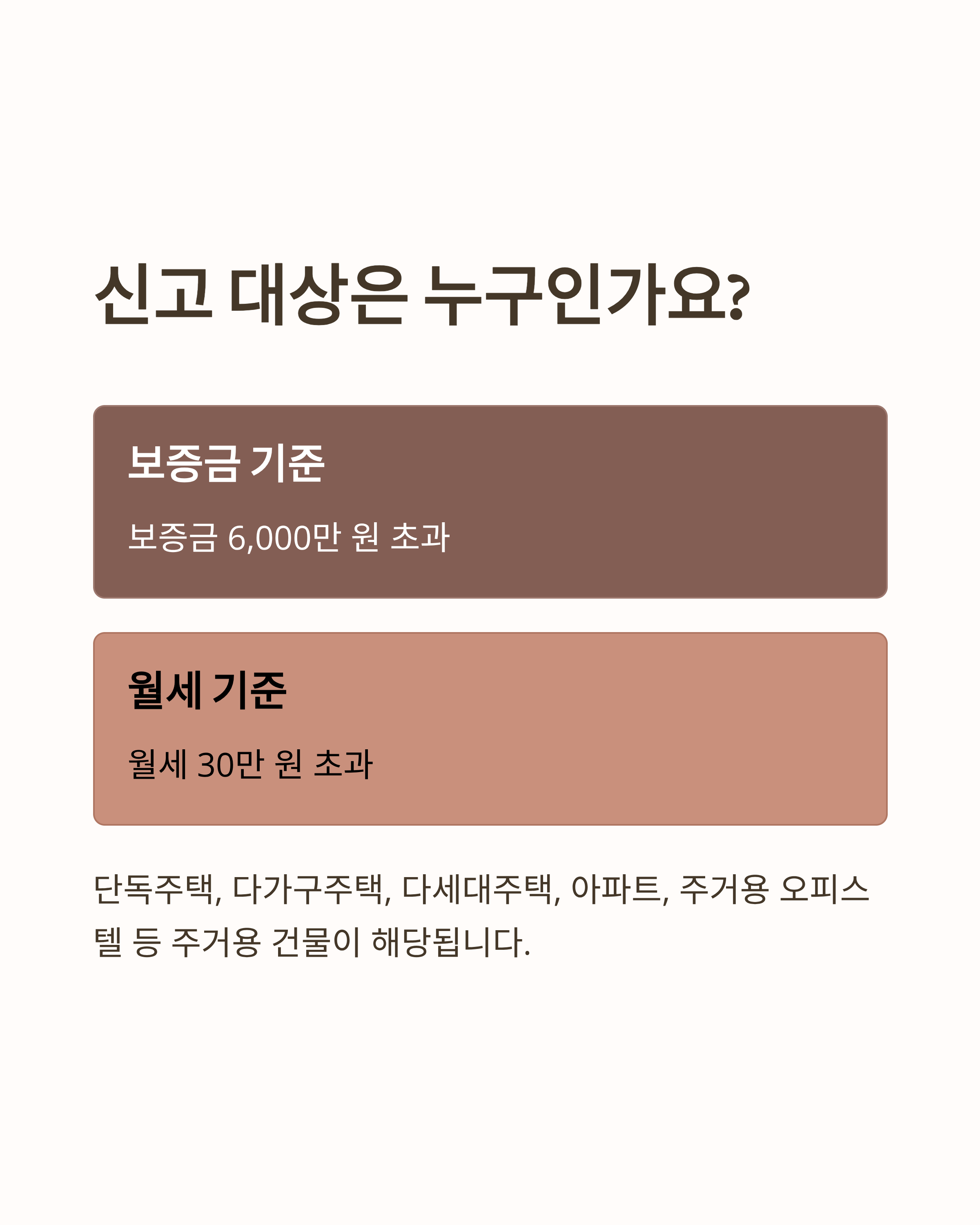 2021년 6월 1일 이후 체결된 모든 주택임대차 계약 중 아래 조건을 만족하면 신고 대상입니다.