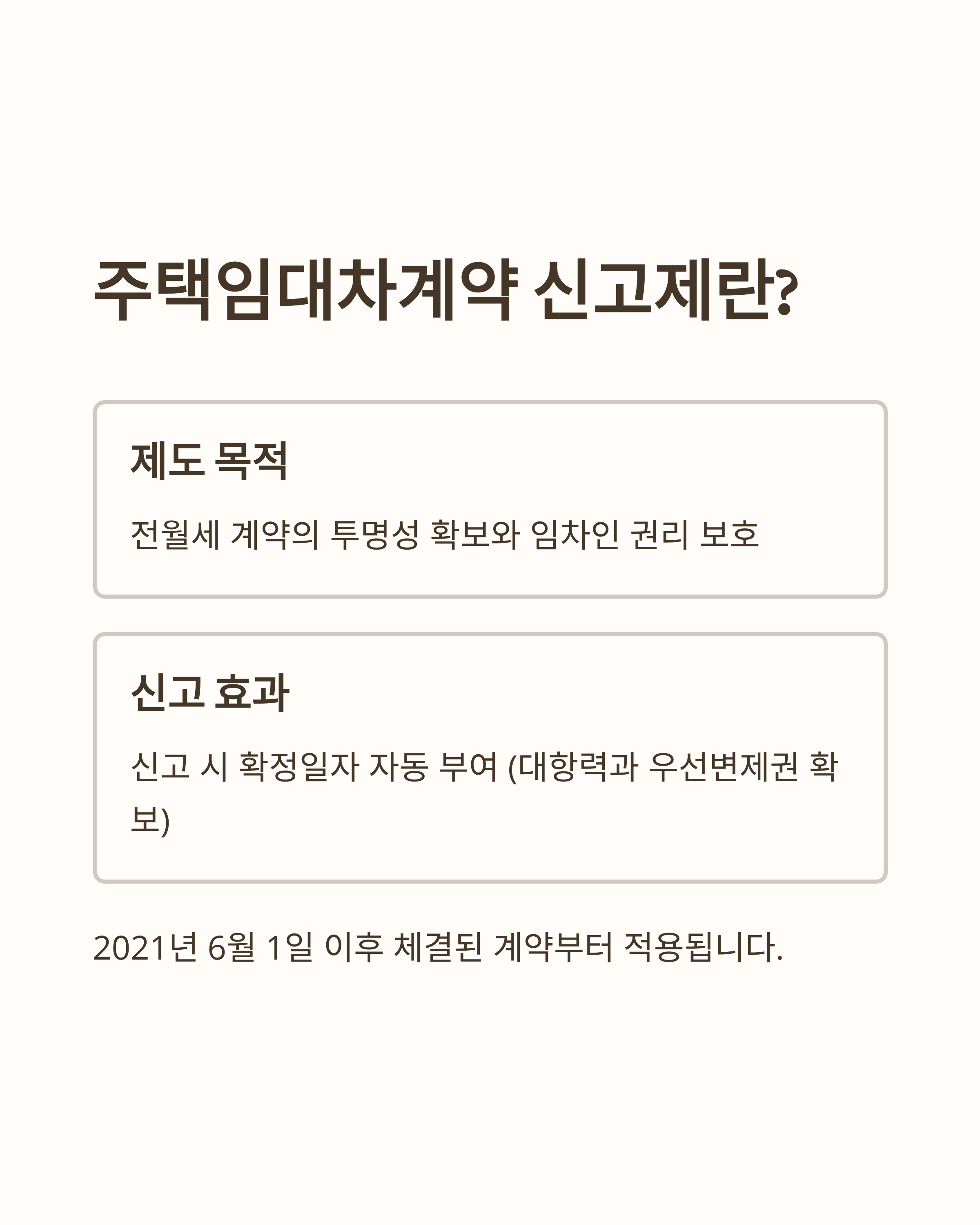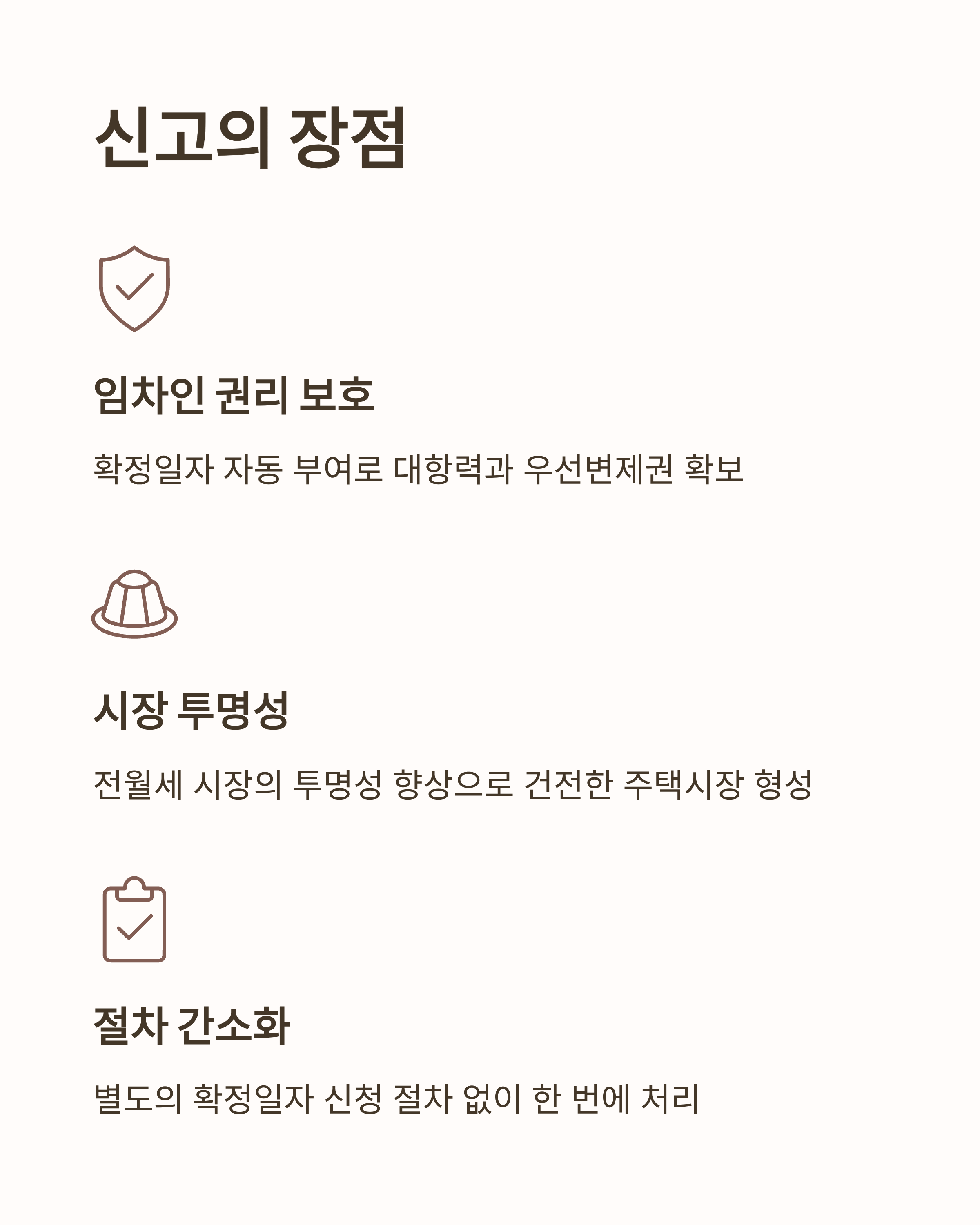 - 임대차 신고를 하면 확정일자가 자동으로 부여되므로, 별도의 절차 없이 대항력과 우선변제권을 확보할 수 있습니다.