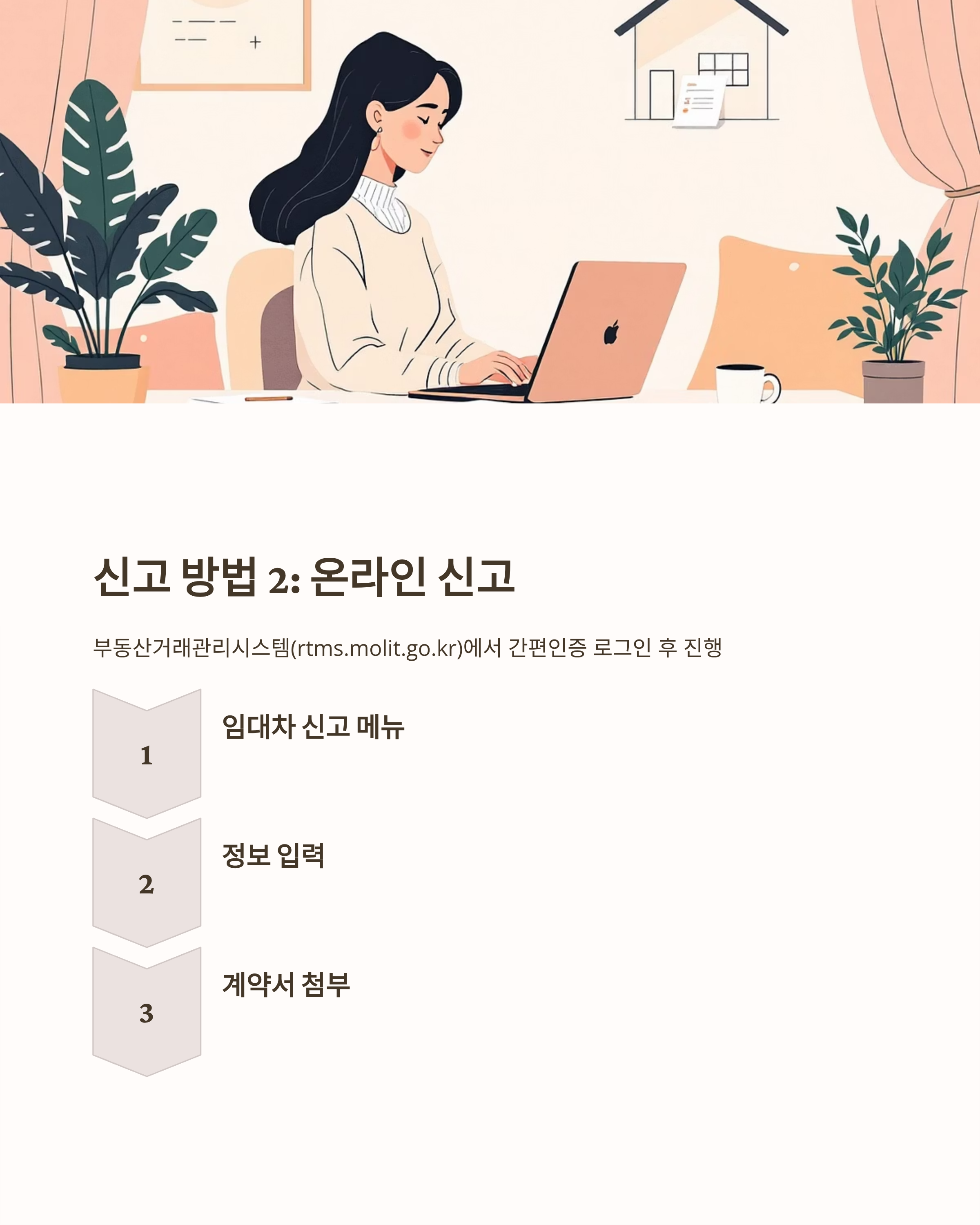 - 온라인 신고: 부동산거래관리시스템(rtms.molit.go.kr) 접속 후 간편인증 로그인