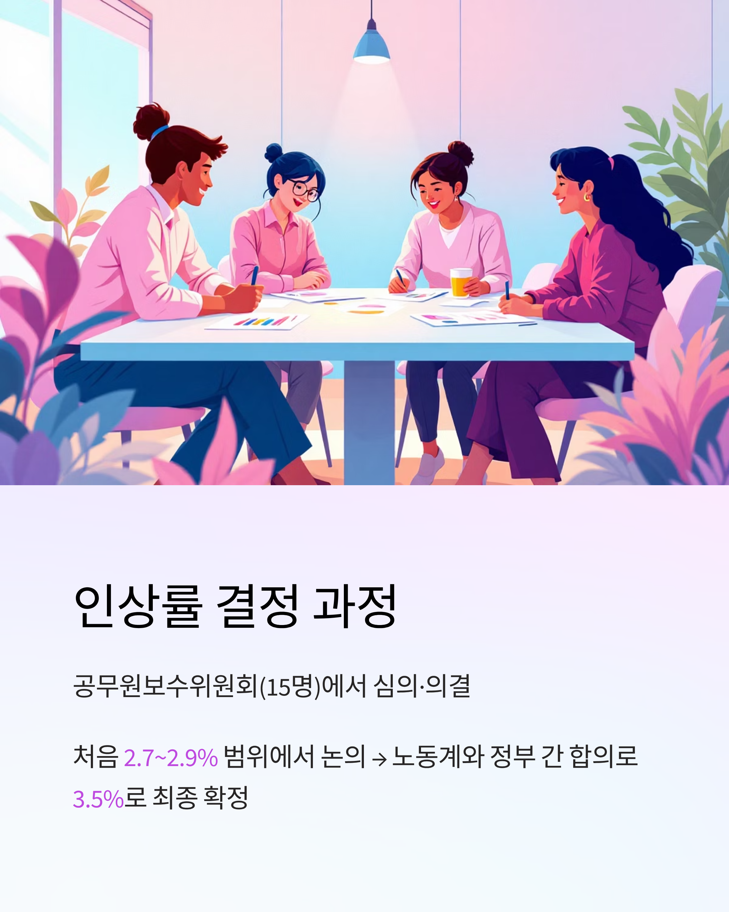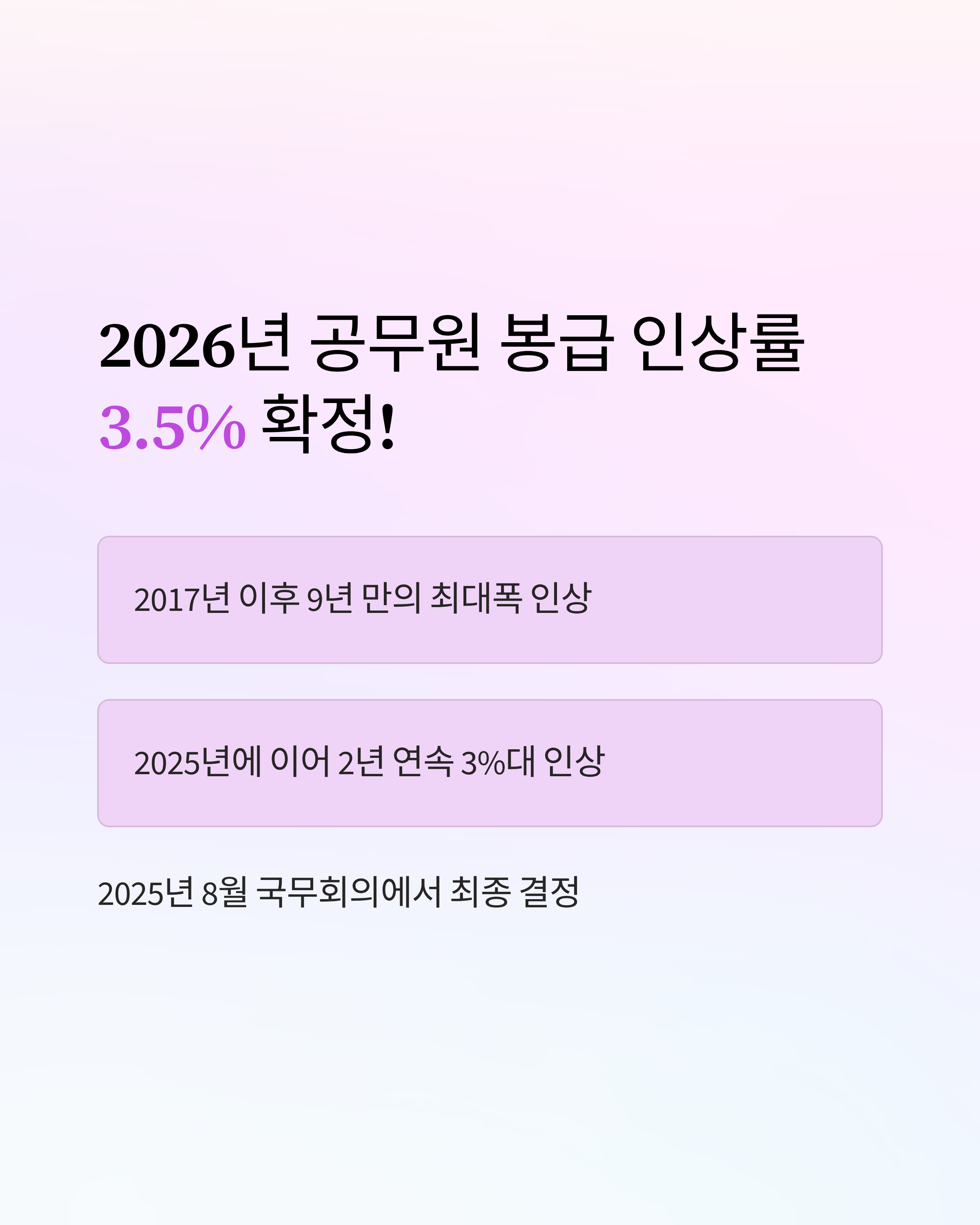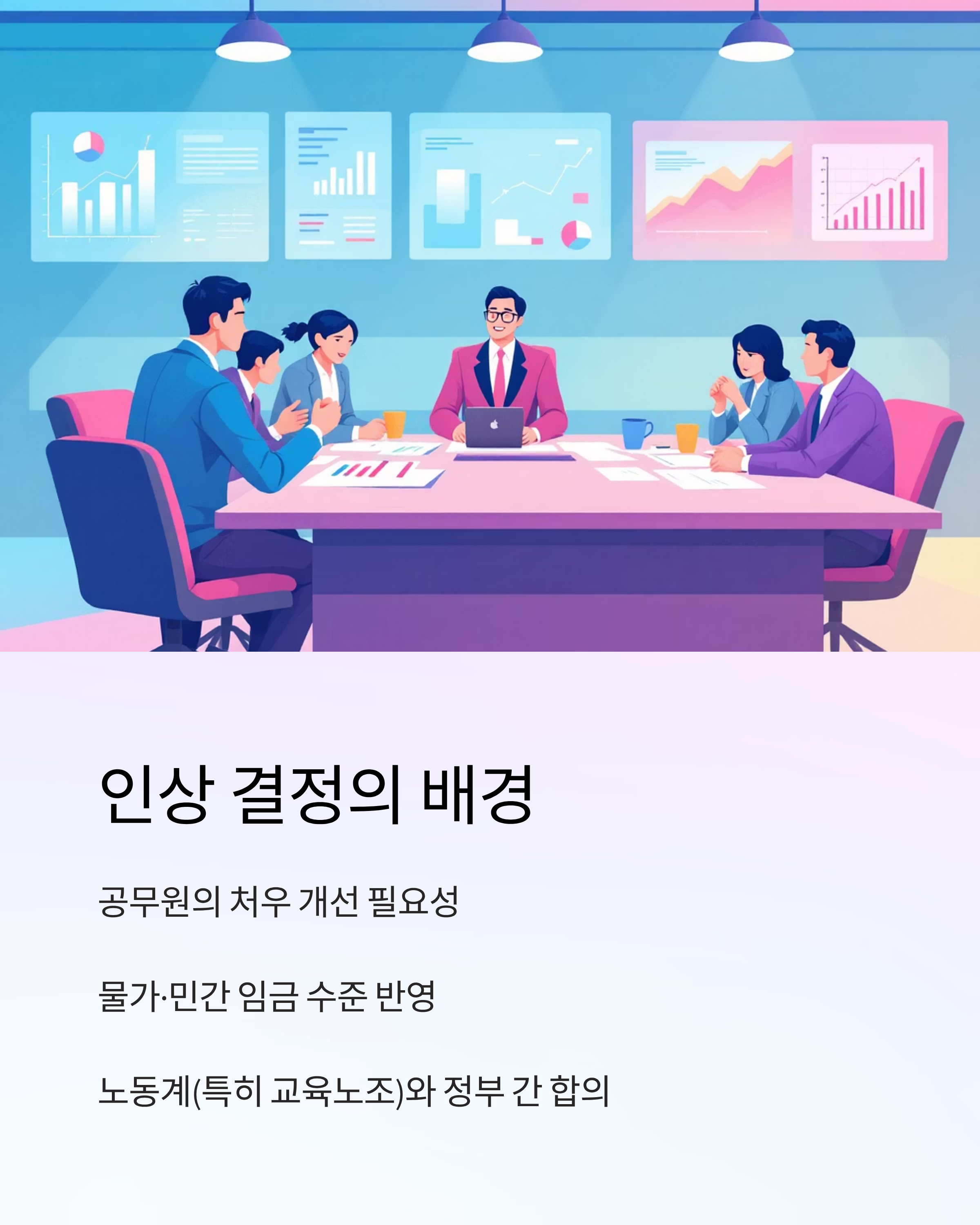 - 노동계(특히 교육노조 등)와 정부 간 합의, 물가·민간 임금 수준 등을 반영해 "최종 3.5%"로 확정되었습니다.
