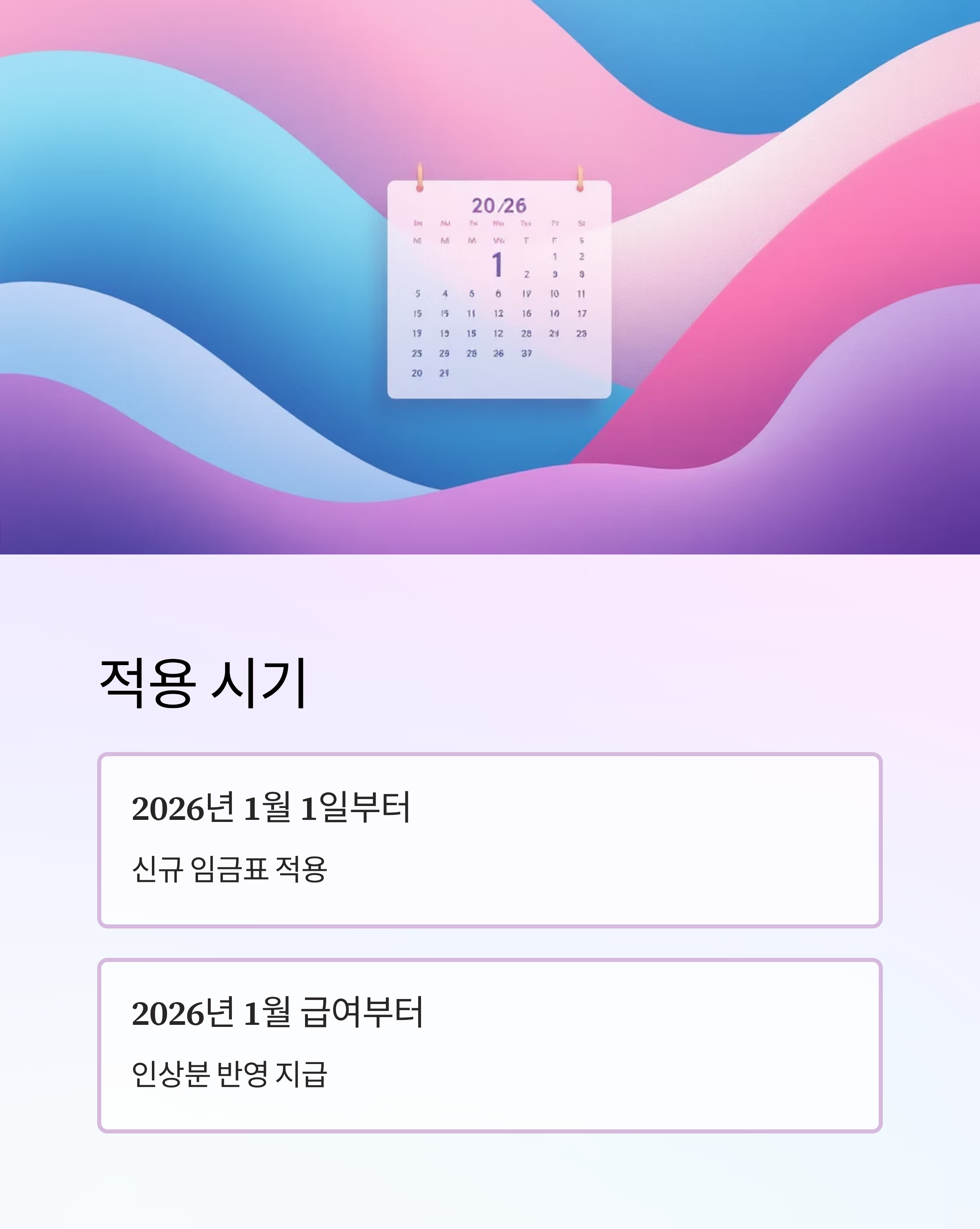 즉, 2026년 1월 급여부터 인상분이 반영되어 지급됩니다.
