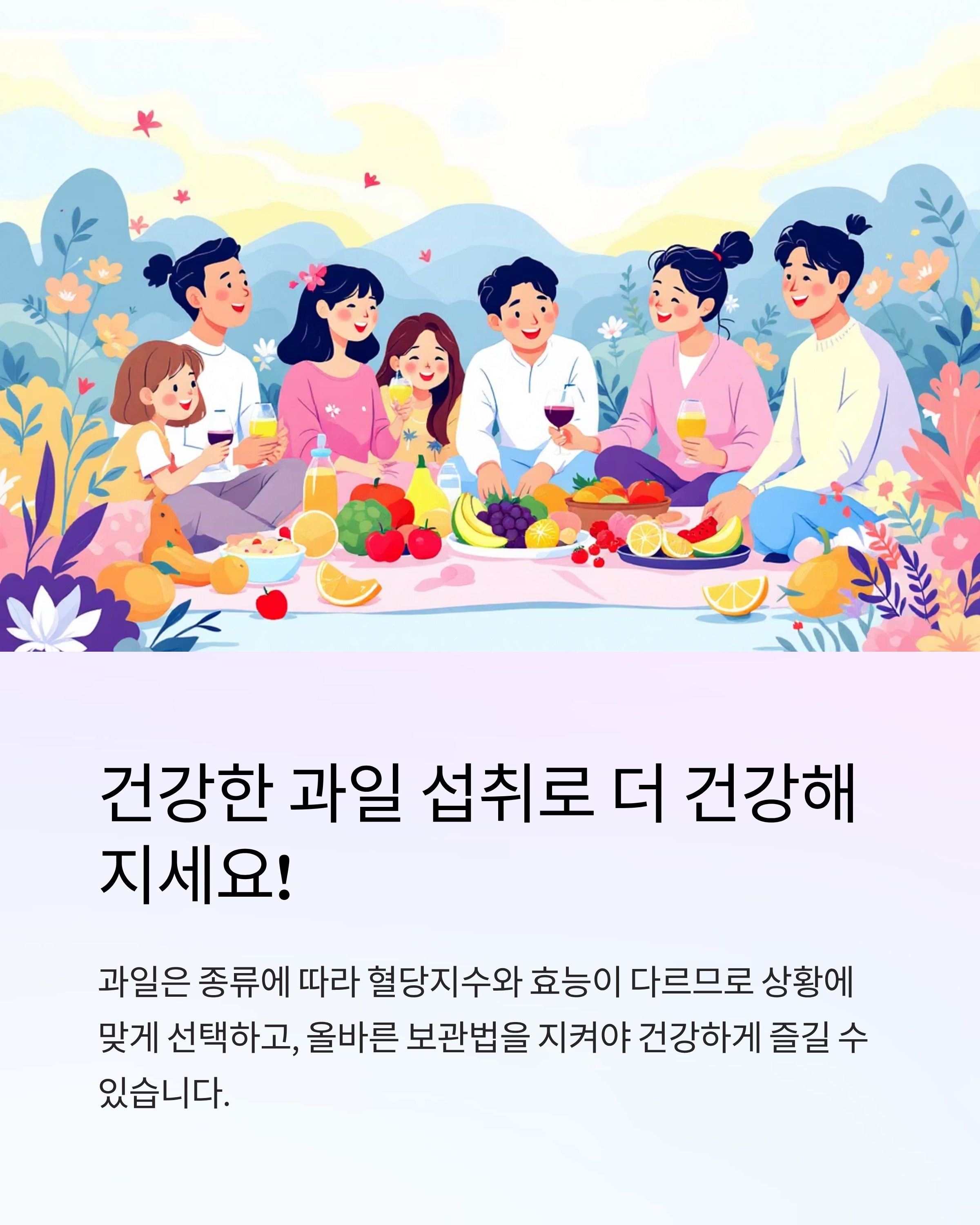 과일은 종류에 따라 혈당지수와 효능이 다르므로 상황에 맞게 선택하고, 올바른 보관법을 지켜야 건강하게 즐길 수 있습니다. 특히 혈당 조절이 필요한 분들은 낮은 GI 과일을 적정량 섭취하는 것이 안전합니다.
