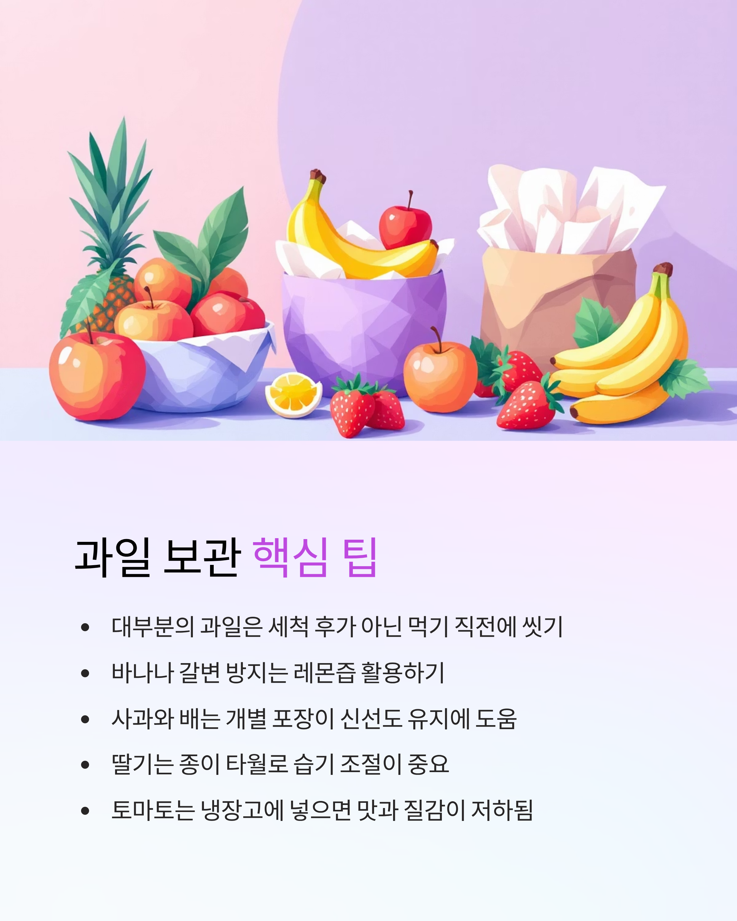 - 신선도와 영양 보존을 위해 과일별 올바른 보관법을 준수