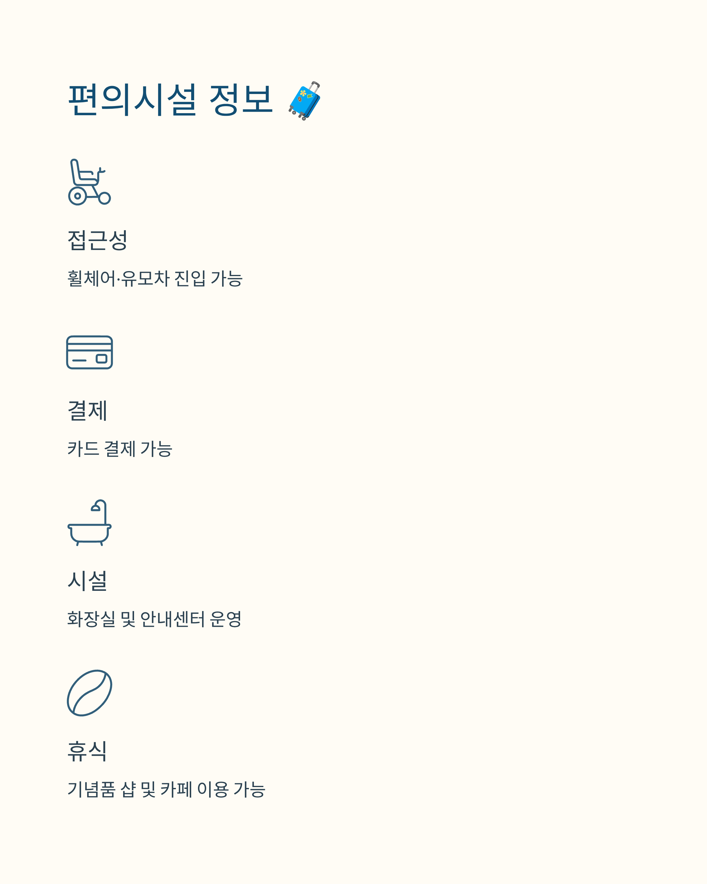 - 기념품 샵 및 간단한 카페도 있어 관광객 편리