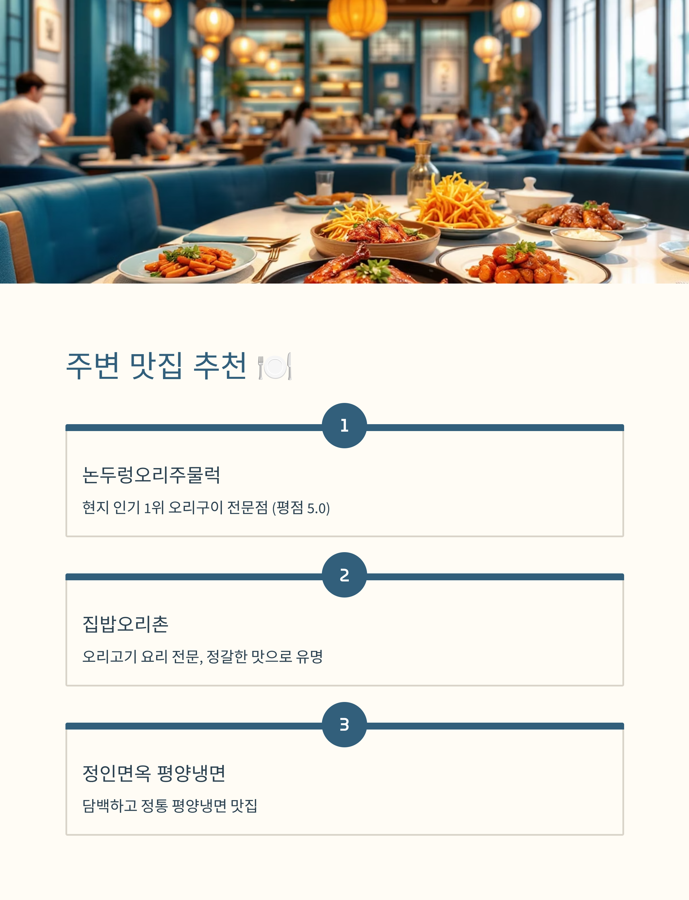- 논두렁오리주물럭: 현지 인기 1위 오리구이 전문점 (평점 5.0)