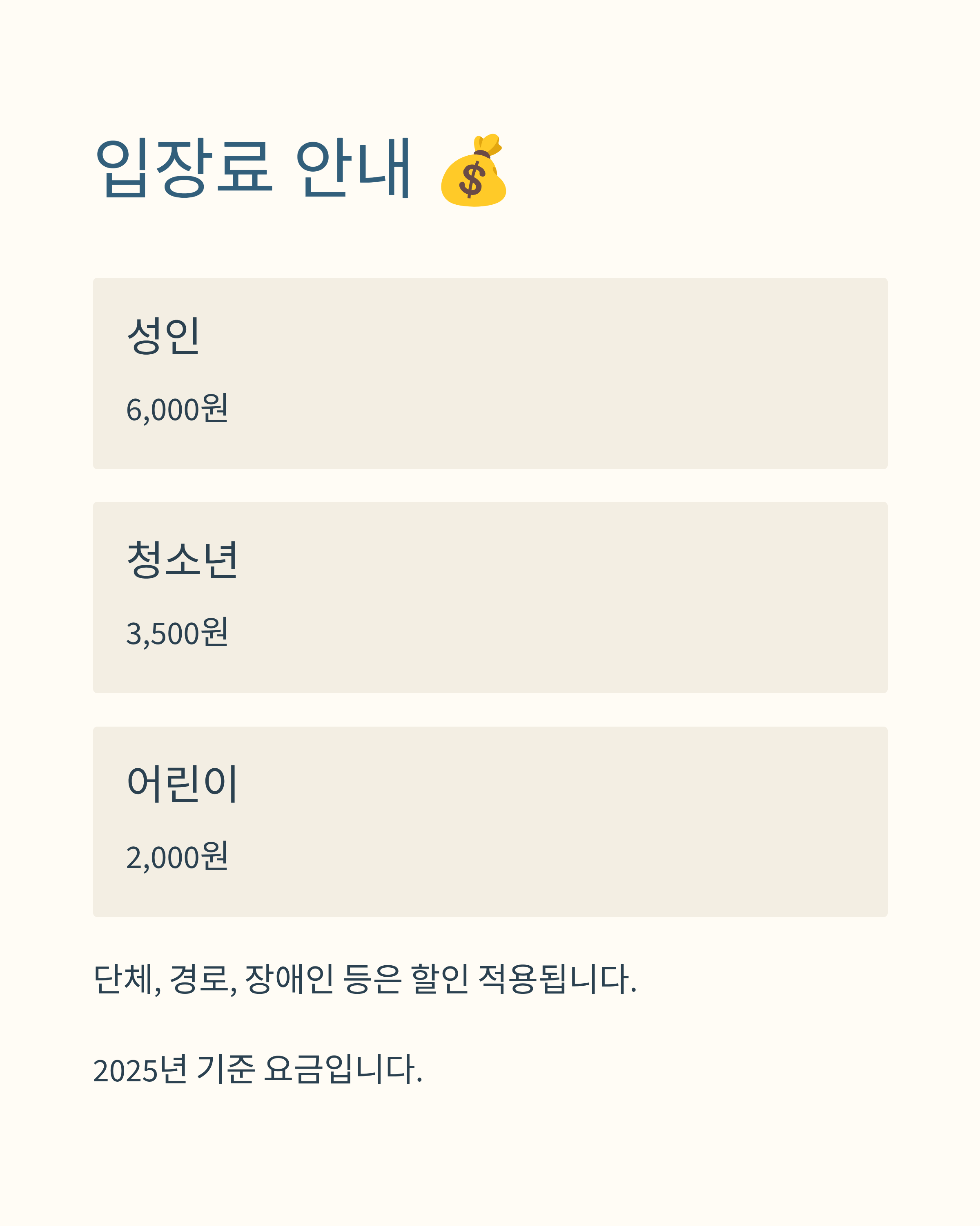- 성수기(주말·방학)에는 대기줄이 길 수 있으니, 오전 일찍 방문 권장