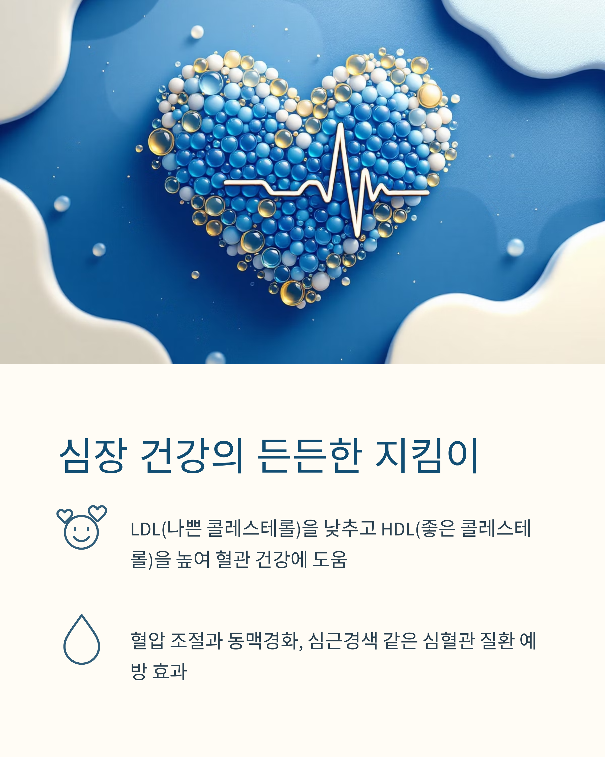- LDL(나쁜 콜레스테롤)을 낮추고 HDL(좋은 콜레스테롤)을 높여 혈관 건강에 도움을 줍니다.