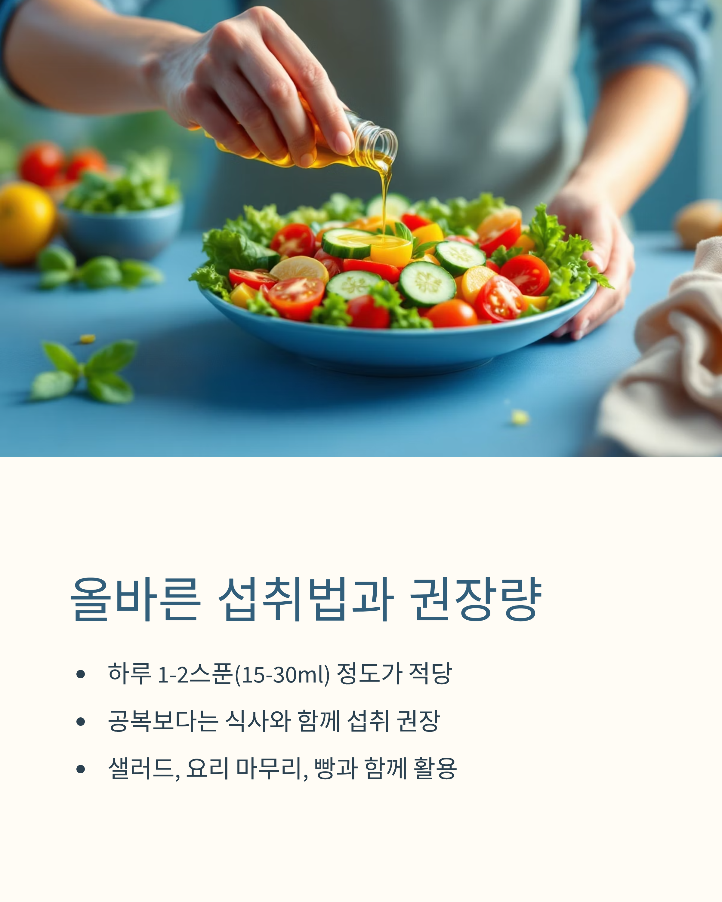 - 샐러드, 요리 마무리, 빵과 곁들여 활용하면 풍미와 건강 효과를 동시에 누릴 수 있습니다.