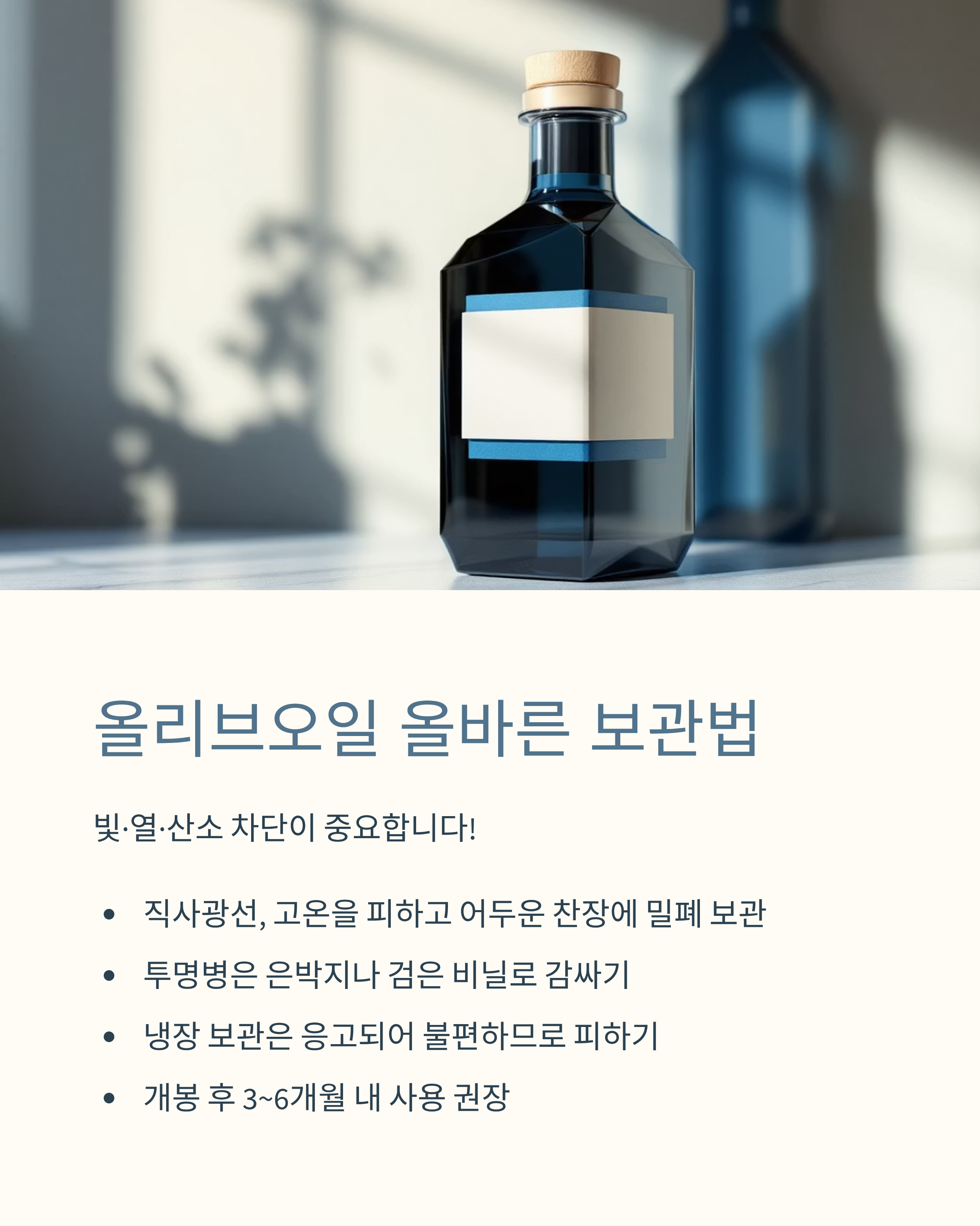 - 냉장 보관은 응고되어 불편하므로 피하고, 개봉 후 3~6개월 내 사용하는 것이 이상적입니다.