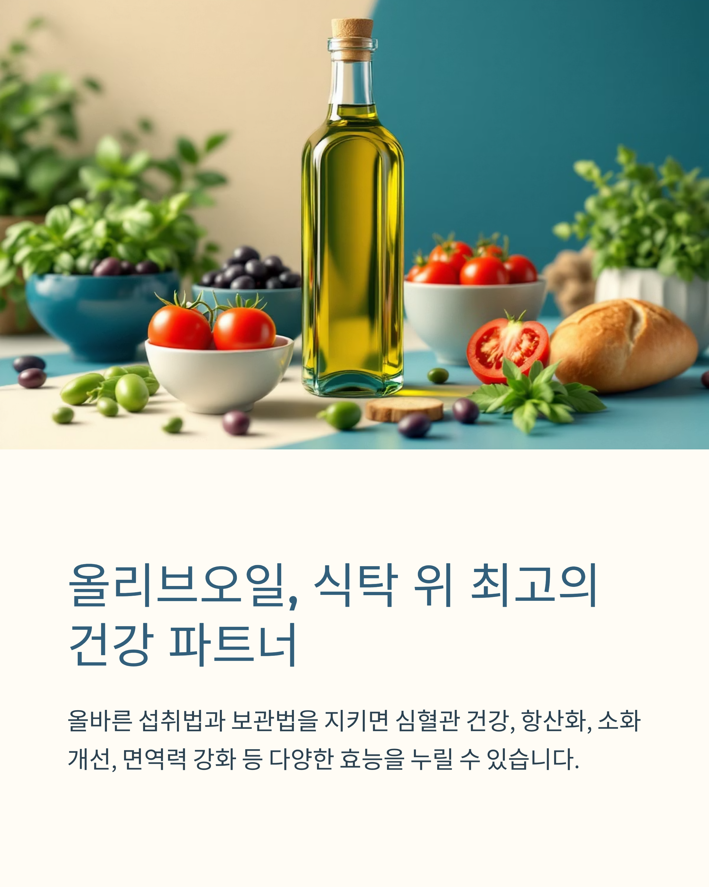 올리브오일은 지중해 식단의 핵심 식재료로, 심혈관 건강과 항산화 효과로 전 세계적으로 주목받고 있습니다. 하지만 올바른 섭취량과 보관법을 지키지 않으면 오히려 부작용을 겪을 수 있어 주의가 필요합니다. 이번 글에서는 올리브오일의 효능, 성분·영양, 종류, 섭취법, 그리고 부작용과 보관법까지 종합적으로 정리했습니다.