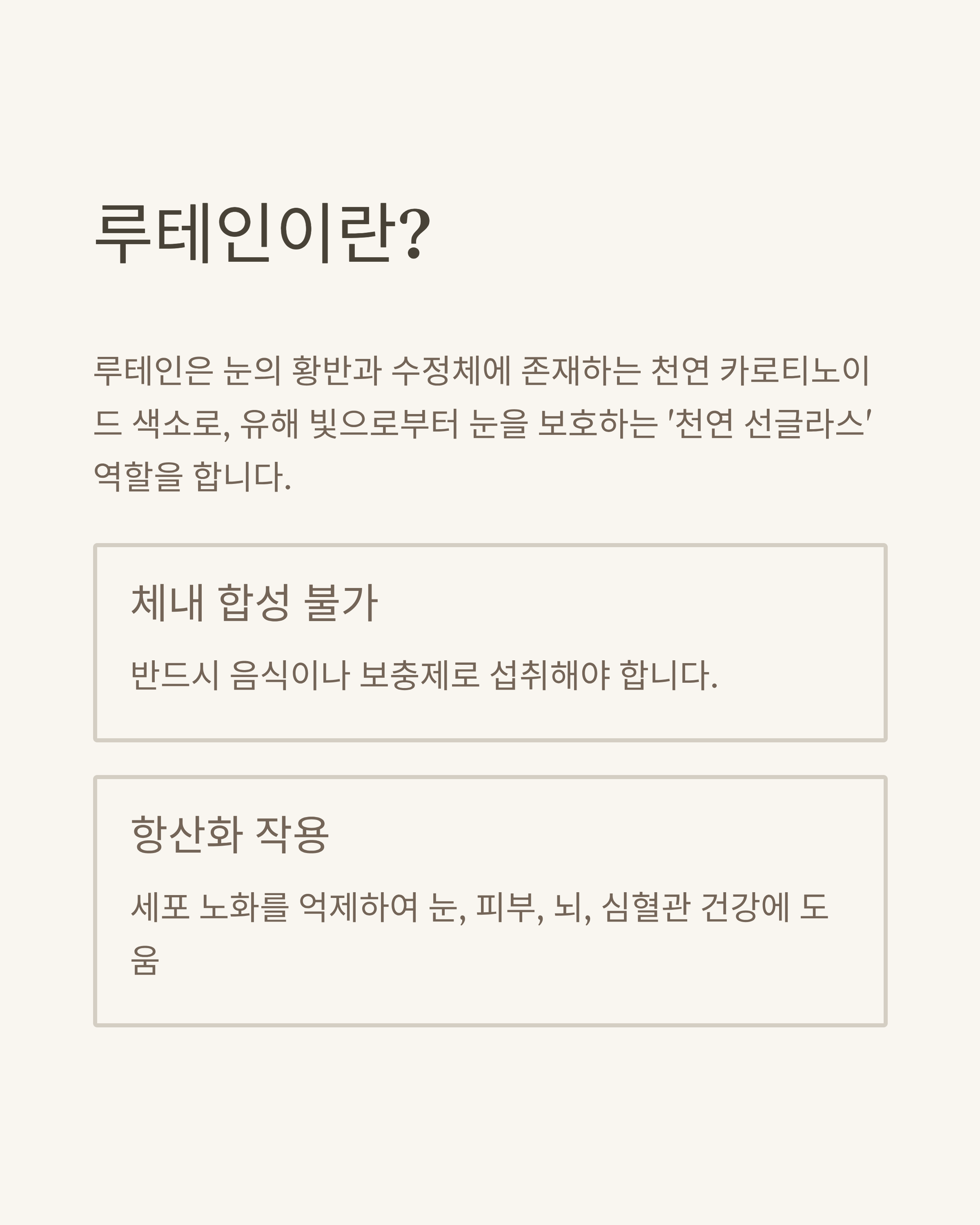 루테인은 눈의 황반과 수정체에 존재하는 천연 카로티노이드 색소입니다.