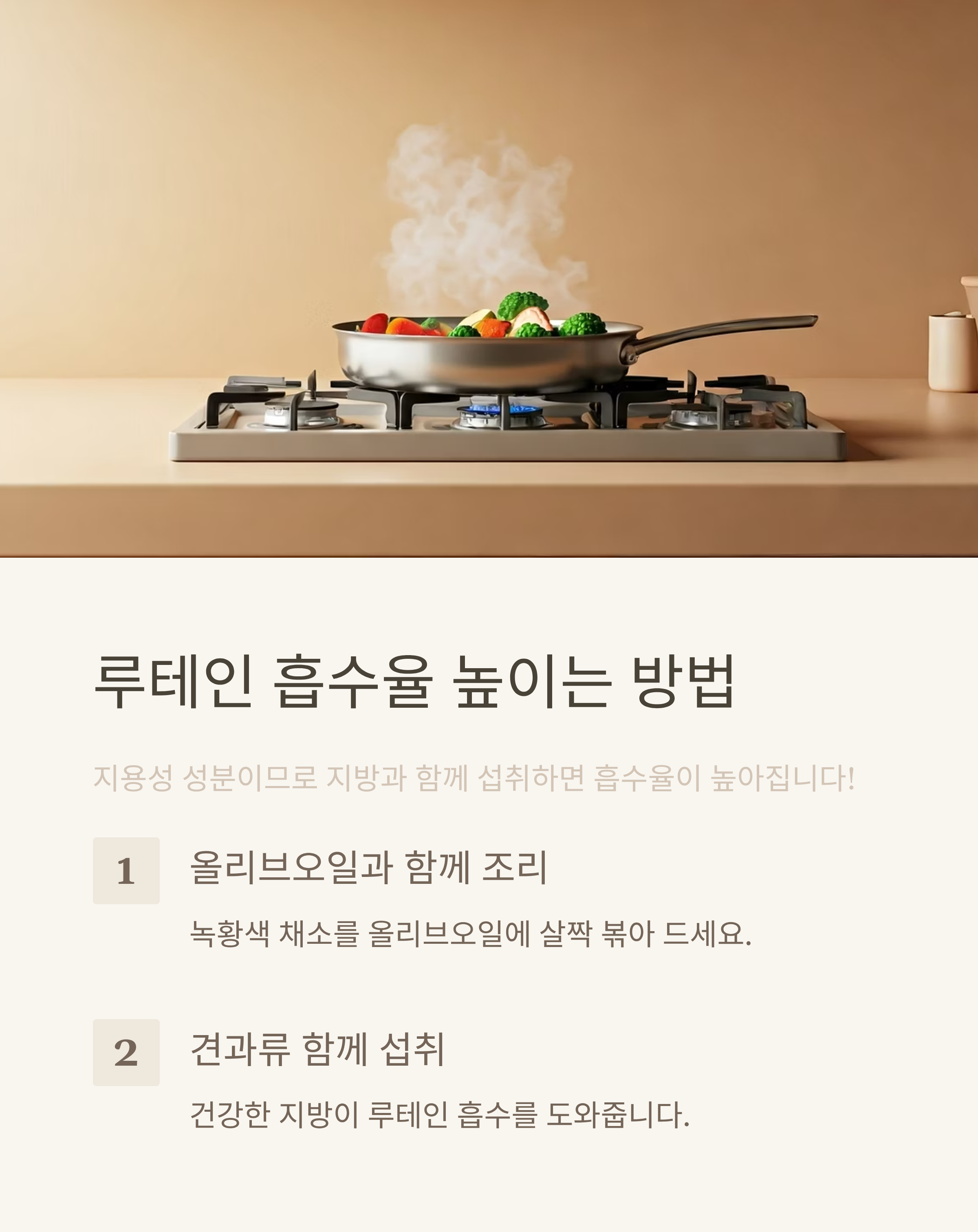 👉 지용성 성분이므로 올리브오일, 견과류와 함께 조리하면 흡수율이 높아집니다.