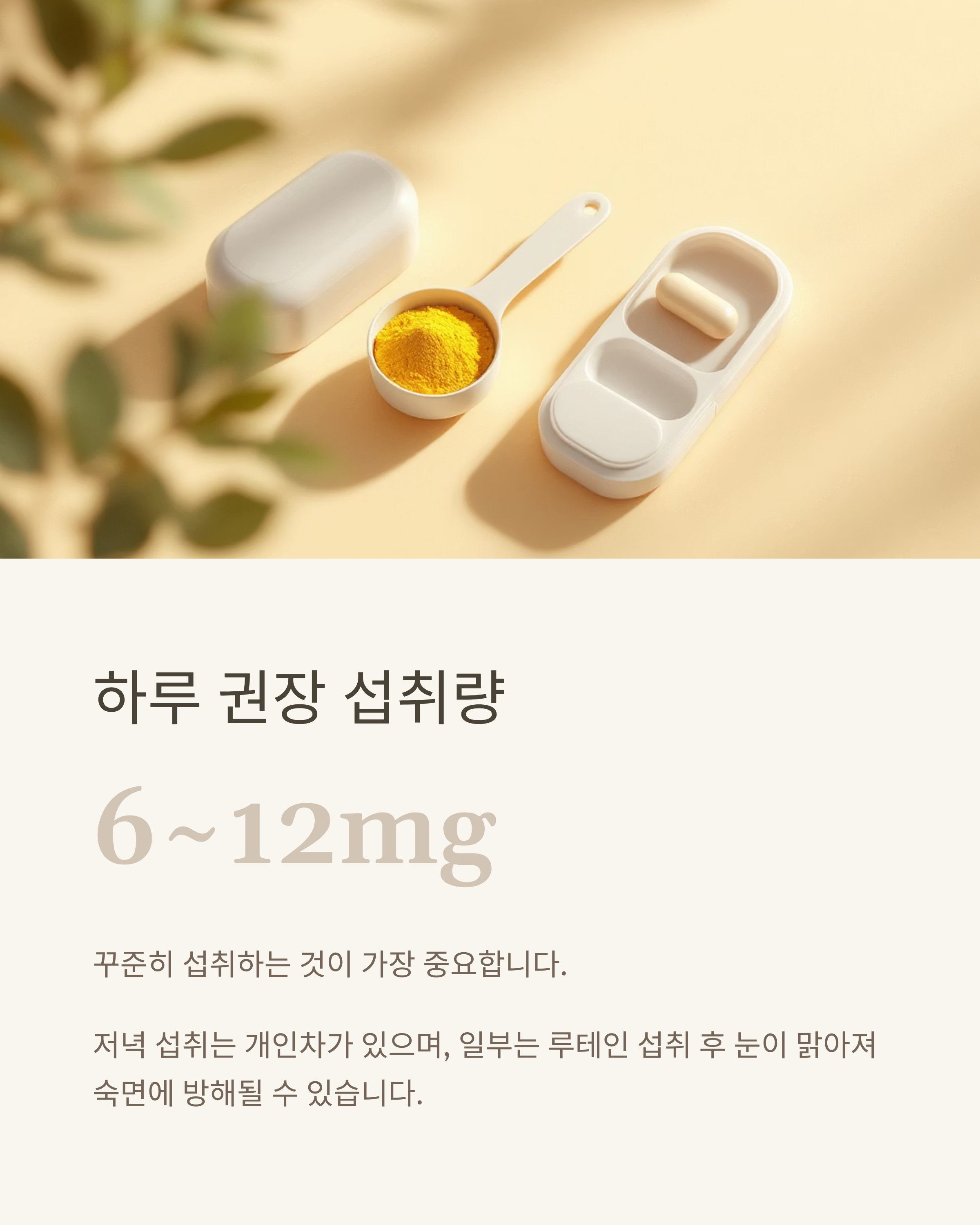 - 하루 6~12mg 꾸준히 섭취 → 눈 건강 유지