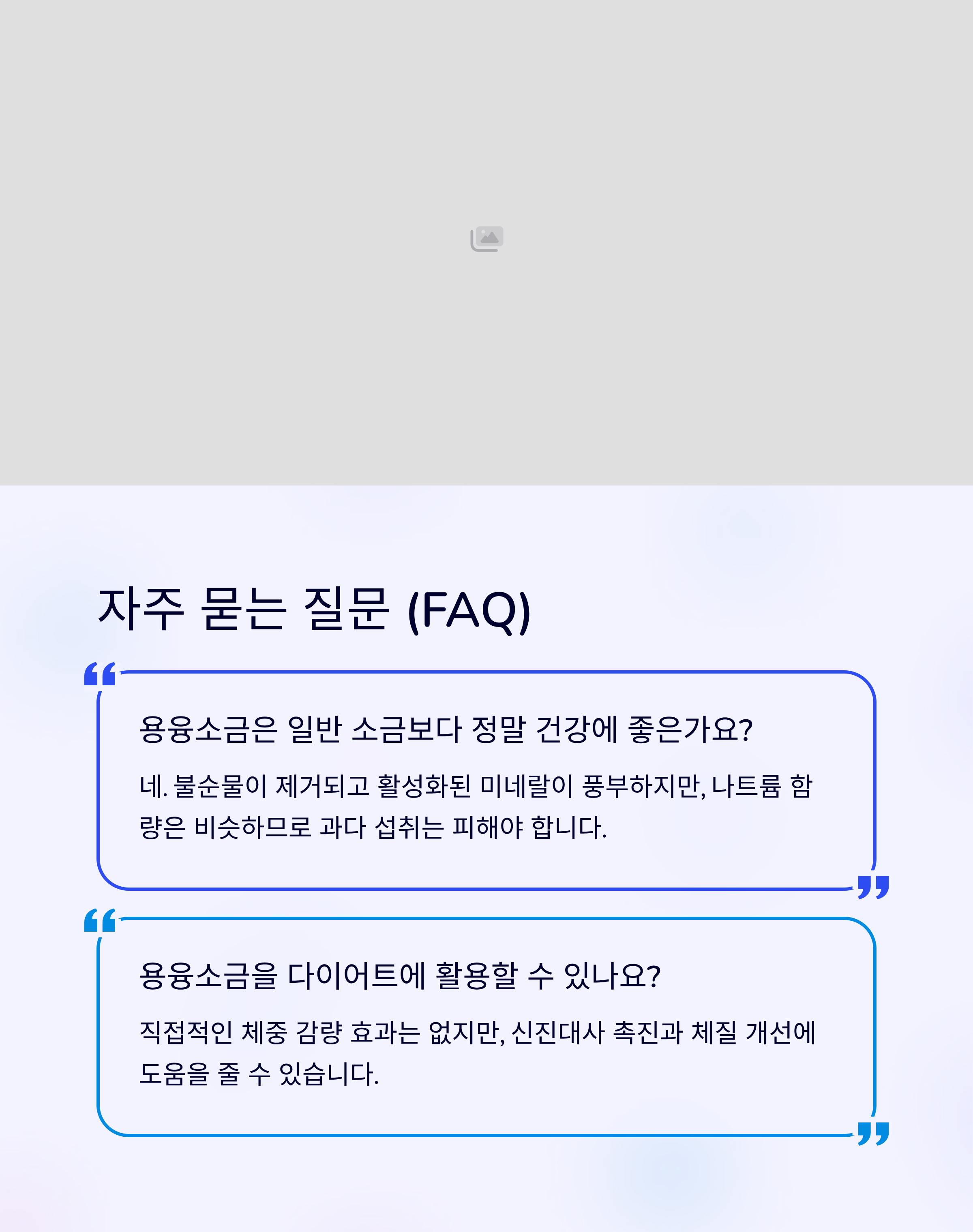 A. 네. 불순물이 제거되어 안전성이 높고, 활성화된 미네랄이 풍부해 일반 소금보다 건강에 이롭습니다. 다만 나트륨 섭취량은 동일하므로 과다 섭취는 금물입니다.