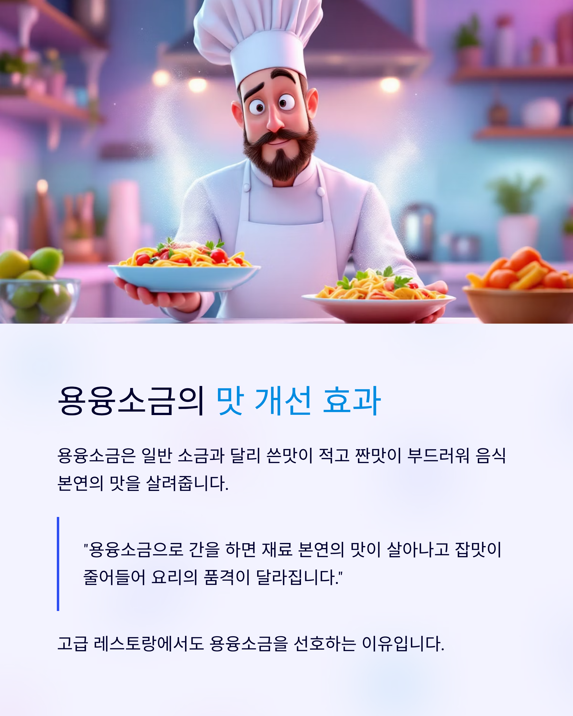 안전성·맛·건강 모두 챙기고 싶다면 용융소금을 일상에 활용해 보세요.