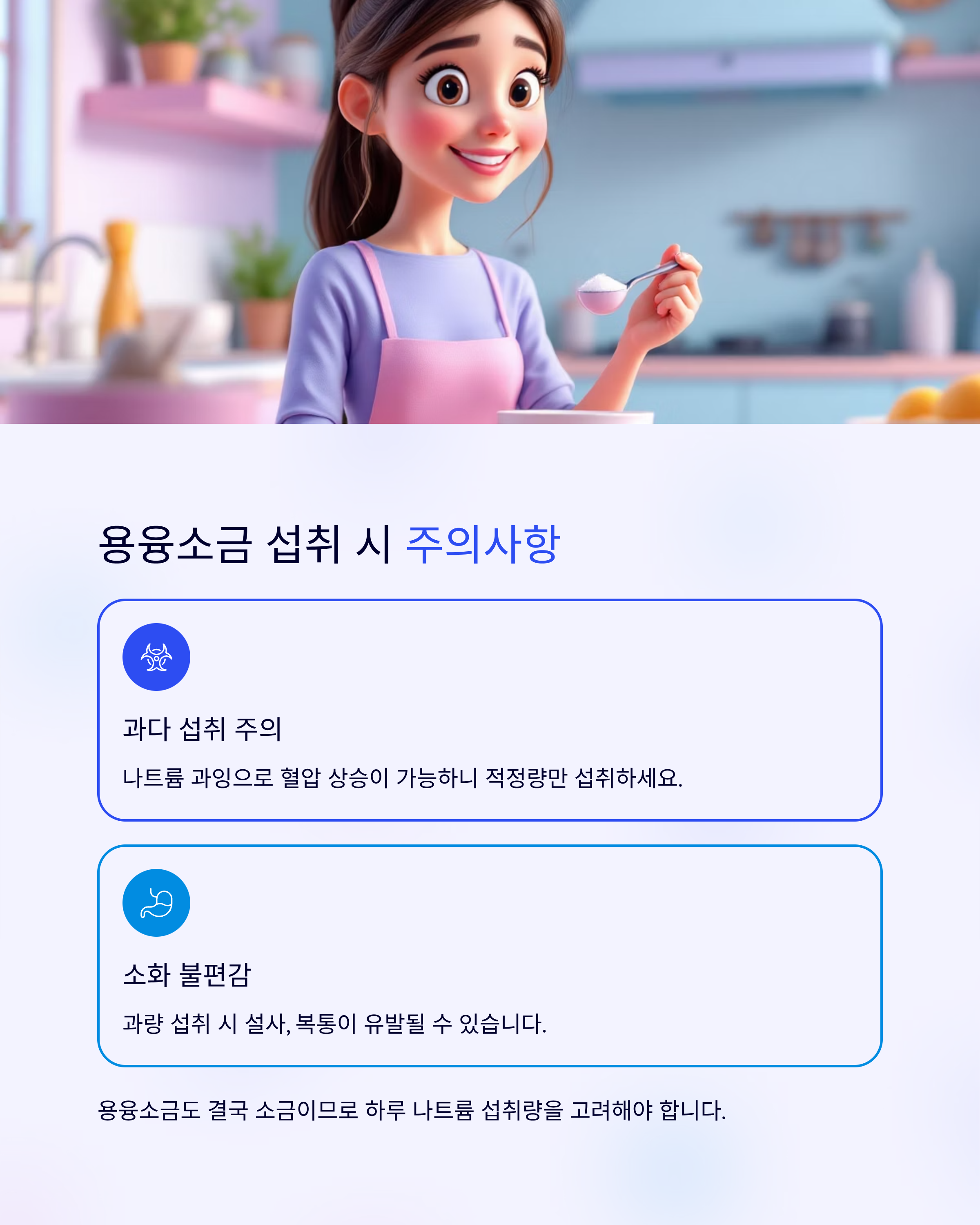 - 과다 섭취 주의: 나트륨 과잉으로 혈압 상승 가능