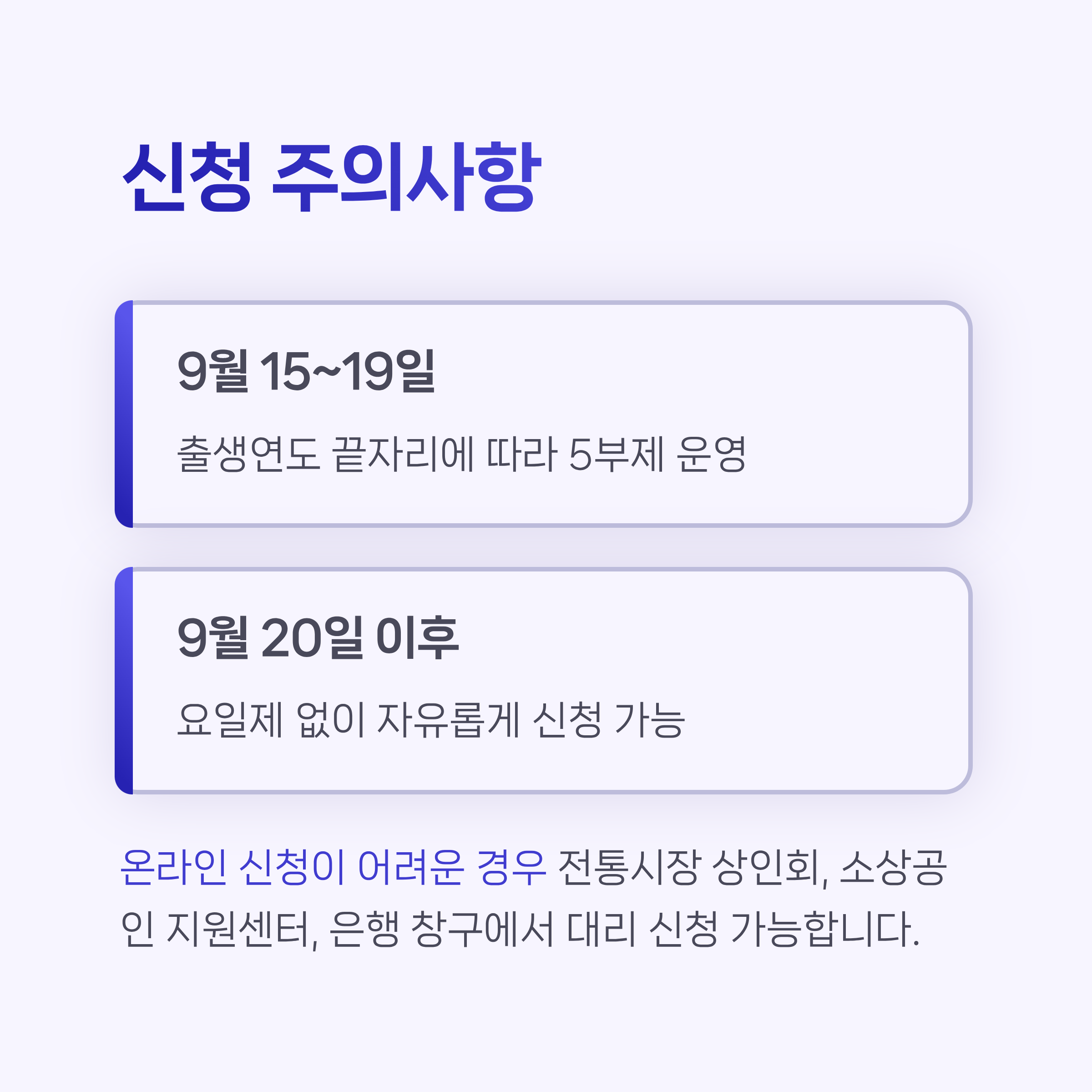 - 9월 15~19일: 출생연도 끝자리에 따라 5부제 운영