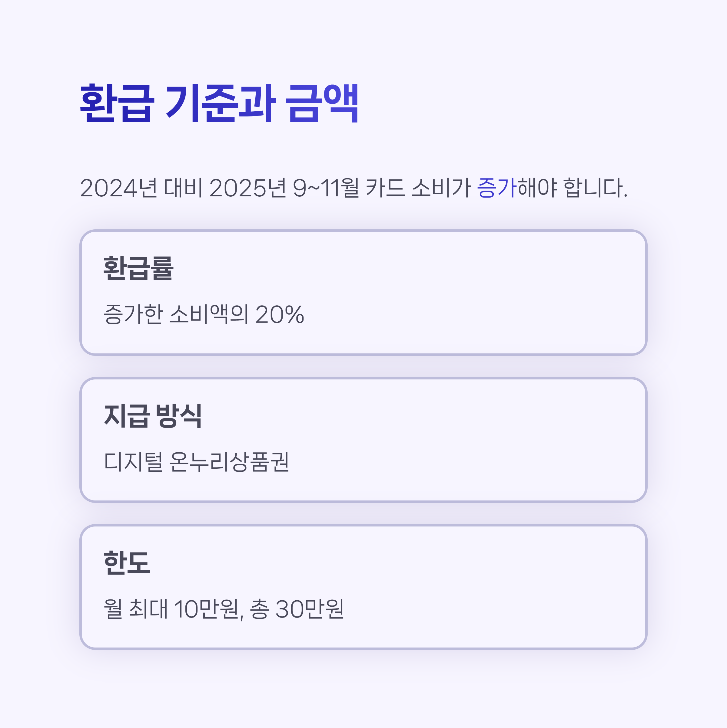 - 2024년 카드 사용 실적 대비 2025년 9~11월 카드 소비 증가분이 있는 경우