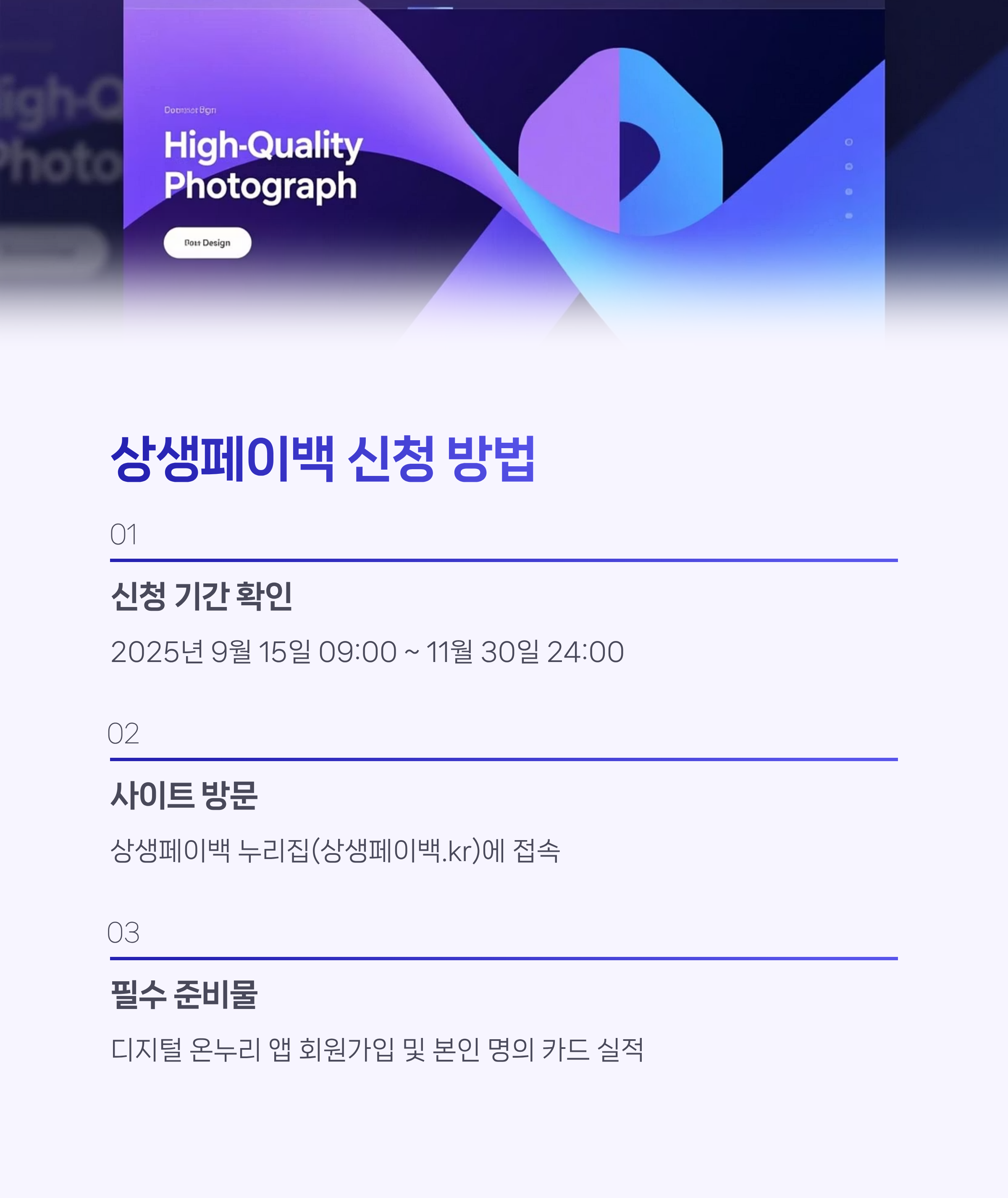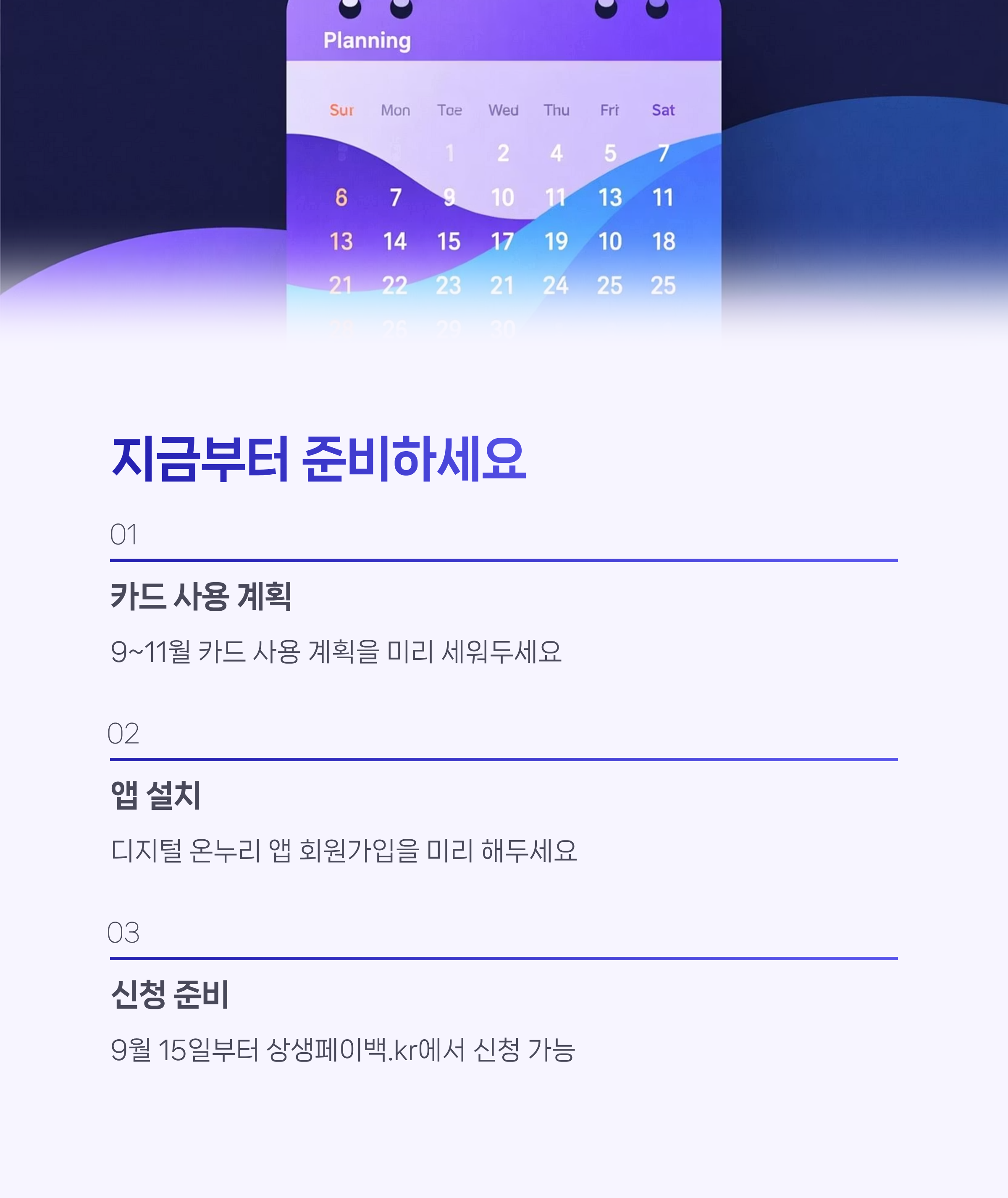 신청은 상생페이백.kr에서 9월 15일부터 시작되며, 디지털 온누리 앱 회원가입도 지금 미리 해두시면 좋습니다.